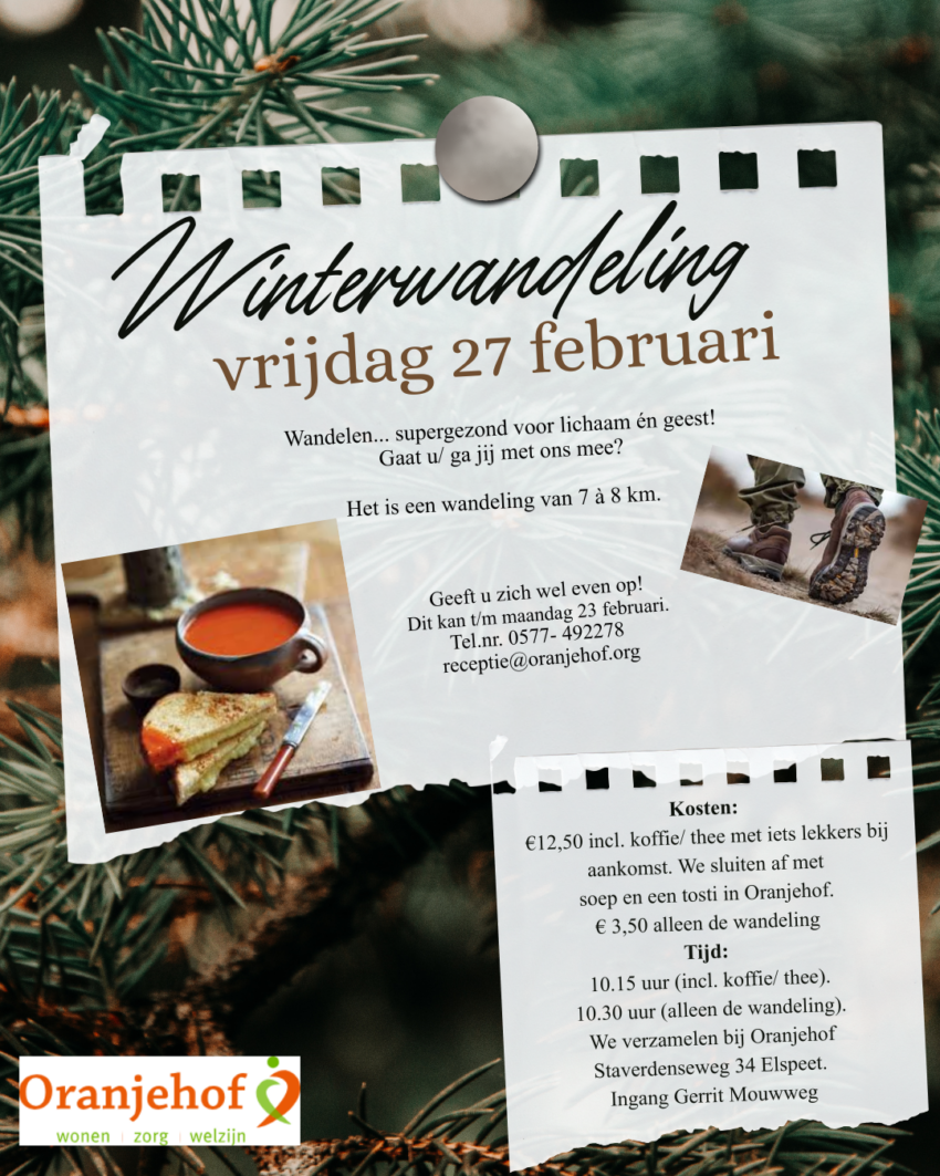 ELSPEET – Vrijdag 27 februari Winterwandeling van 7 á 8 kilometer! Loopt u/ loop jij met ons mee? Lees alle…