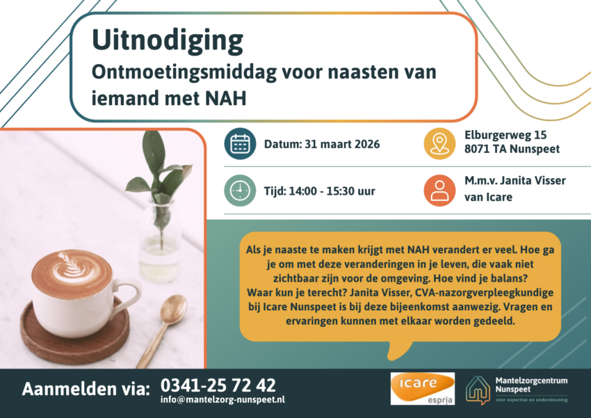 NUNSPEET – Op 31 maart organiseert Mantelzorgcentrum Nunspeet in samenwerking met Icare Nunspeet een ontmoetingsmiddag voor naasten van iemand met…