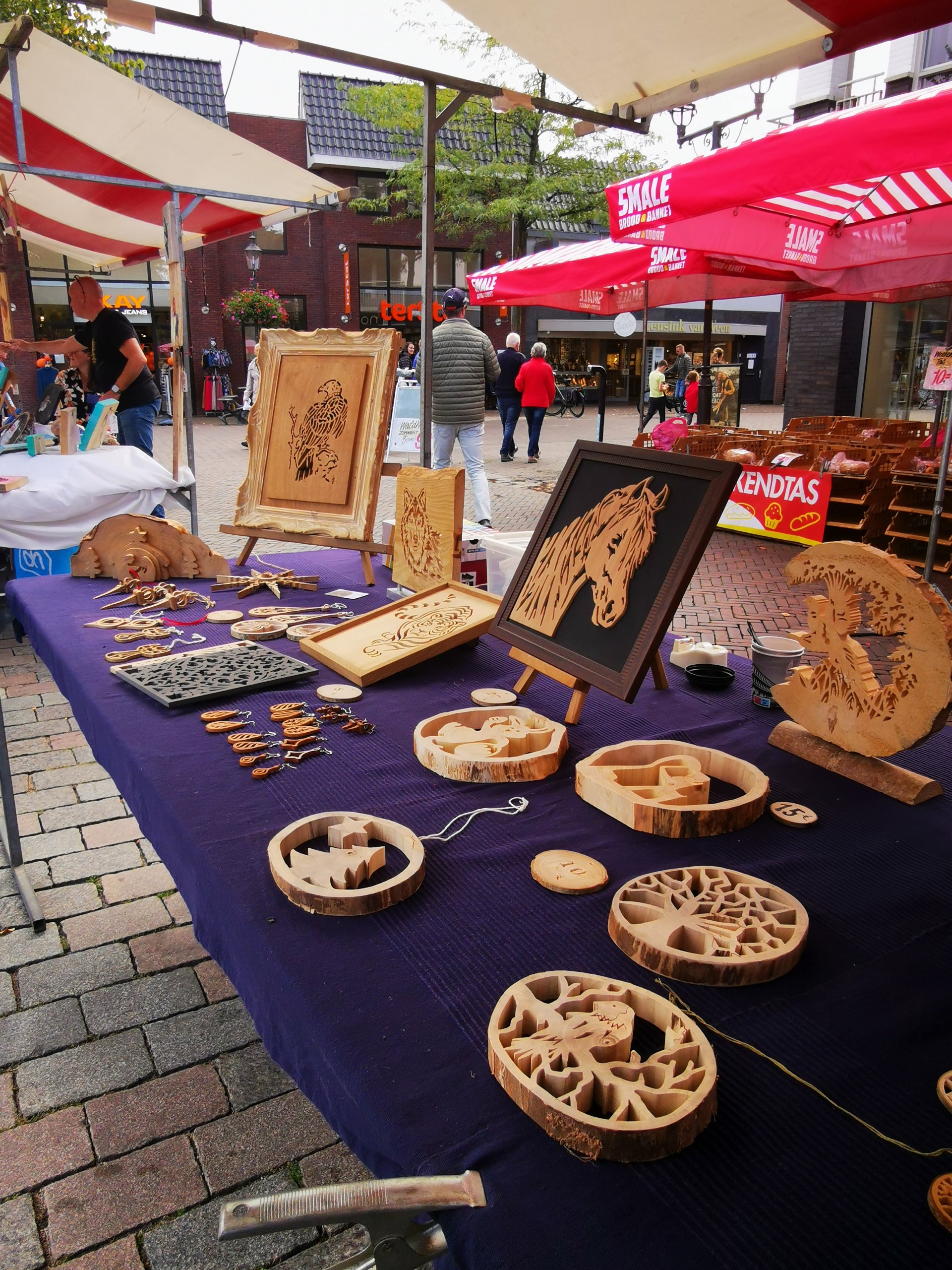 Op het ruime en groene marktplein in Nunspeet, omgeven door vele terrasjes, zul je deze dag een zeer divers aanbod van kunst aantreffen. Natuurlijk zijn er schilderijen en beeldhouwkunst, maar ook veel andere vormen van kunst zijn hier te zien. Wat dacht je van kleurrijke glaskunst, kunst op hout, kunst met gerecyclede materialen, diverse sieraden en objecten van natuursteen of staal. Ook zijn er kunstwerken, in alle vormen en maten en prijzen, te koop. Een bezoekje aan de kunstmarkt, uiteraard gecombineerd met een gezellig bezoek aan het Nunspeetse winkelcentrum, biedt zeker veel inspiratie en plezier! Ook leuk is de combinatie met een bezoek aan het Noord-Veluws kunst Museum, waar dan de nieuwe tentoonstelling ‘Nida, kunstenaarsdorp in Litouwen’ te zien is. De Kunstmarkt wordt georganiseerd door Nunspeet uit de Kunst. Wil jij eventueel nog deelnemen aan deze Kunstmarkt? Kijk dan op nunspeetuitdekunst.nl/contact/deelnemen-kunstmarkt-nunspeet/.