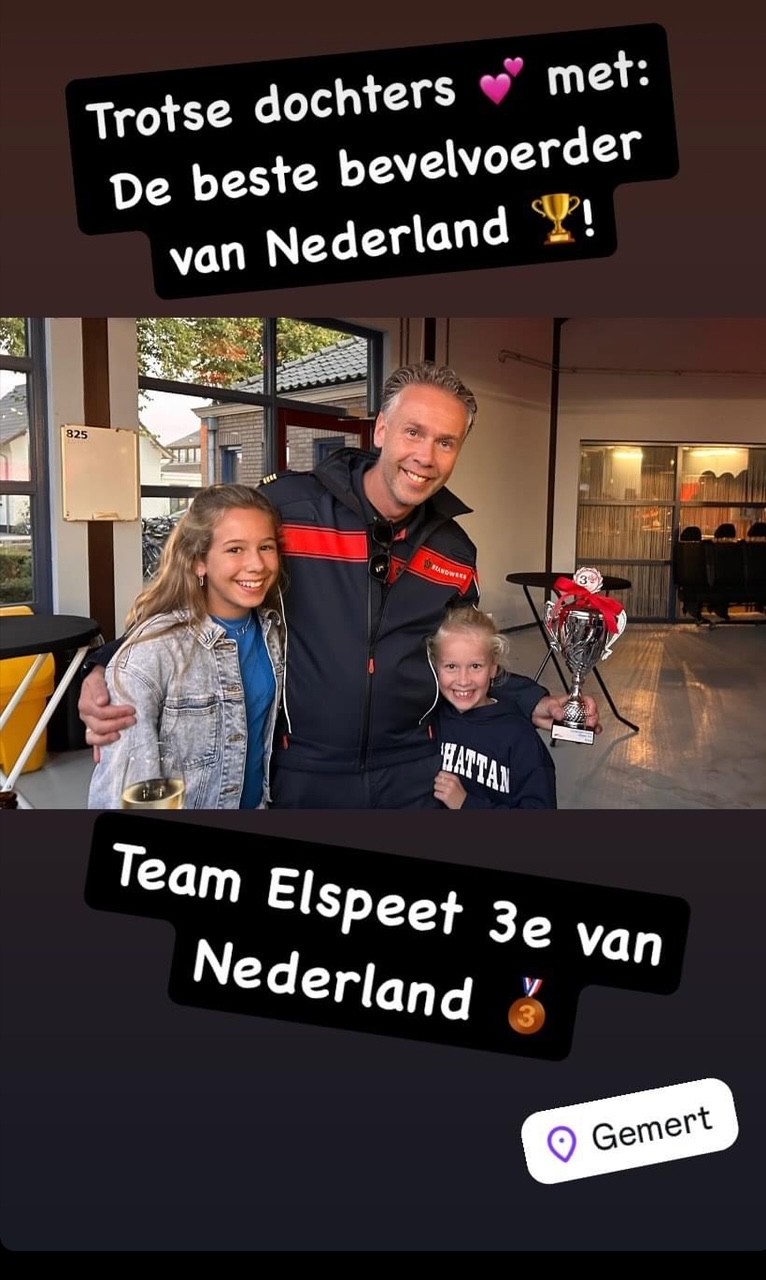 ELSPEET- Afgelopen zaterdag heeft brandweerpost Elspeet na 3 voorrondes (provinciaal, 1e gewestelijke en 2e gewestelijke) meegedaan in de landelijke finale 112 in Gemert. De beste 9 brandweerploegen uit heel Nederland kregen een realistisch scenario voor de kiezen en dat werd beloond met een prachtige 3e plaats. Een super resultaat want meedoen in de landelijke finale is al uniek. Van de 282 deelnemende ploegen uit Nederland is Elspeet de 3e beste geworden van Nederland in de klasse 112. Elspeet had ook de eer om de titel van “beste bevelvoerder van Nederland 2024” te scoren deze dag.