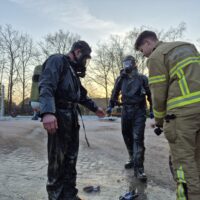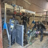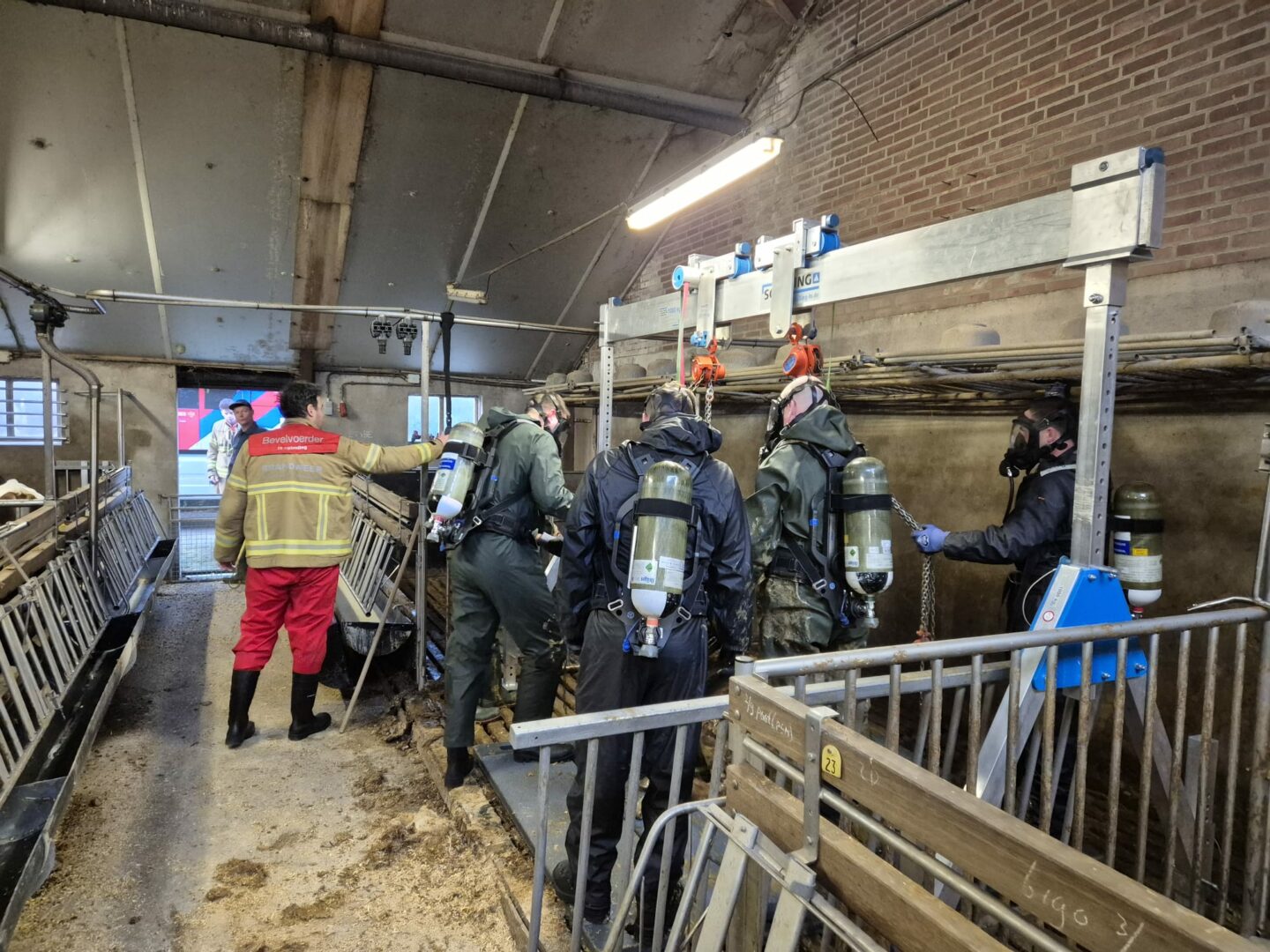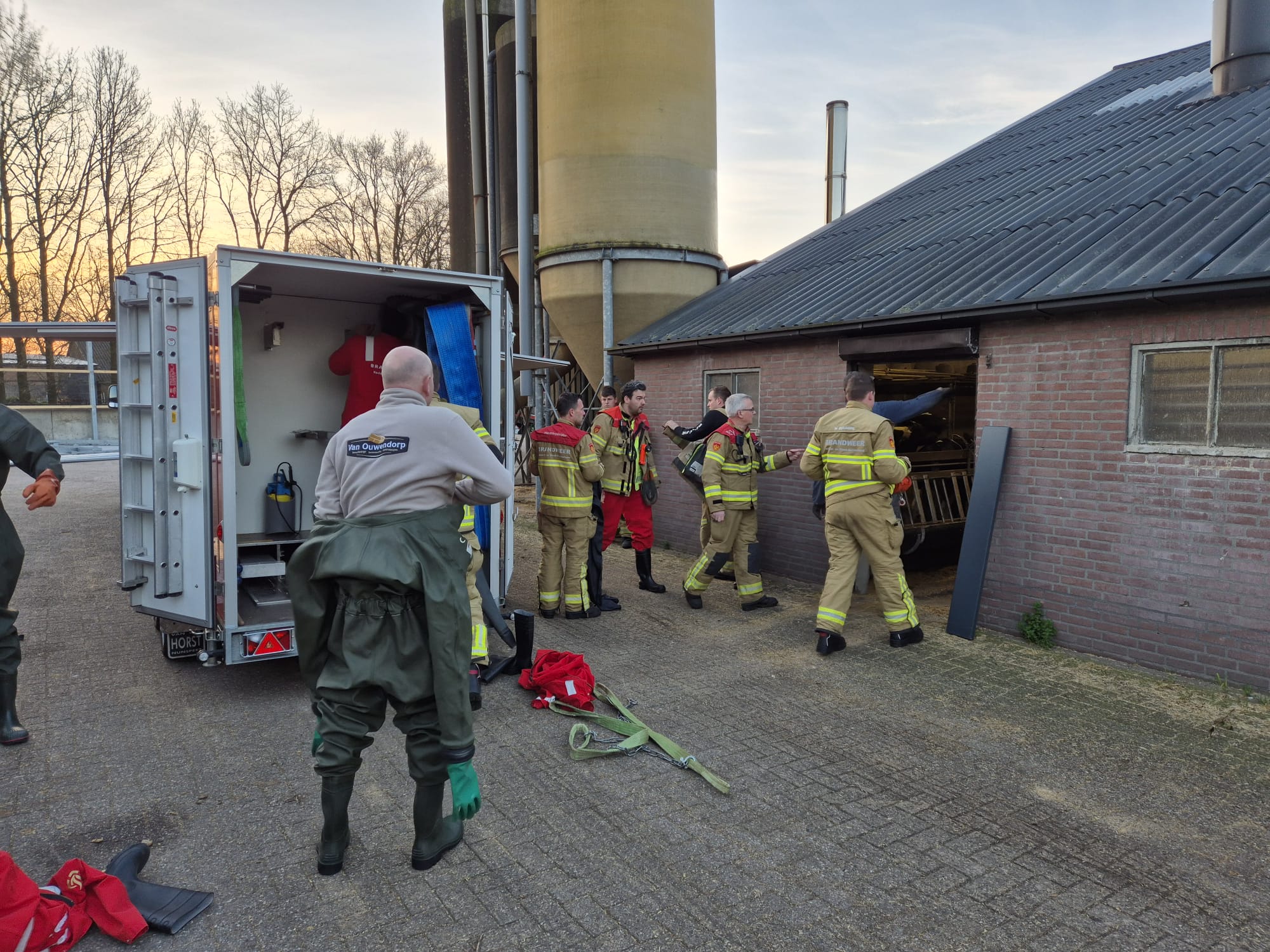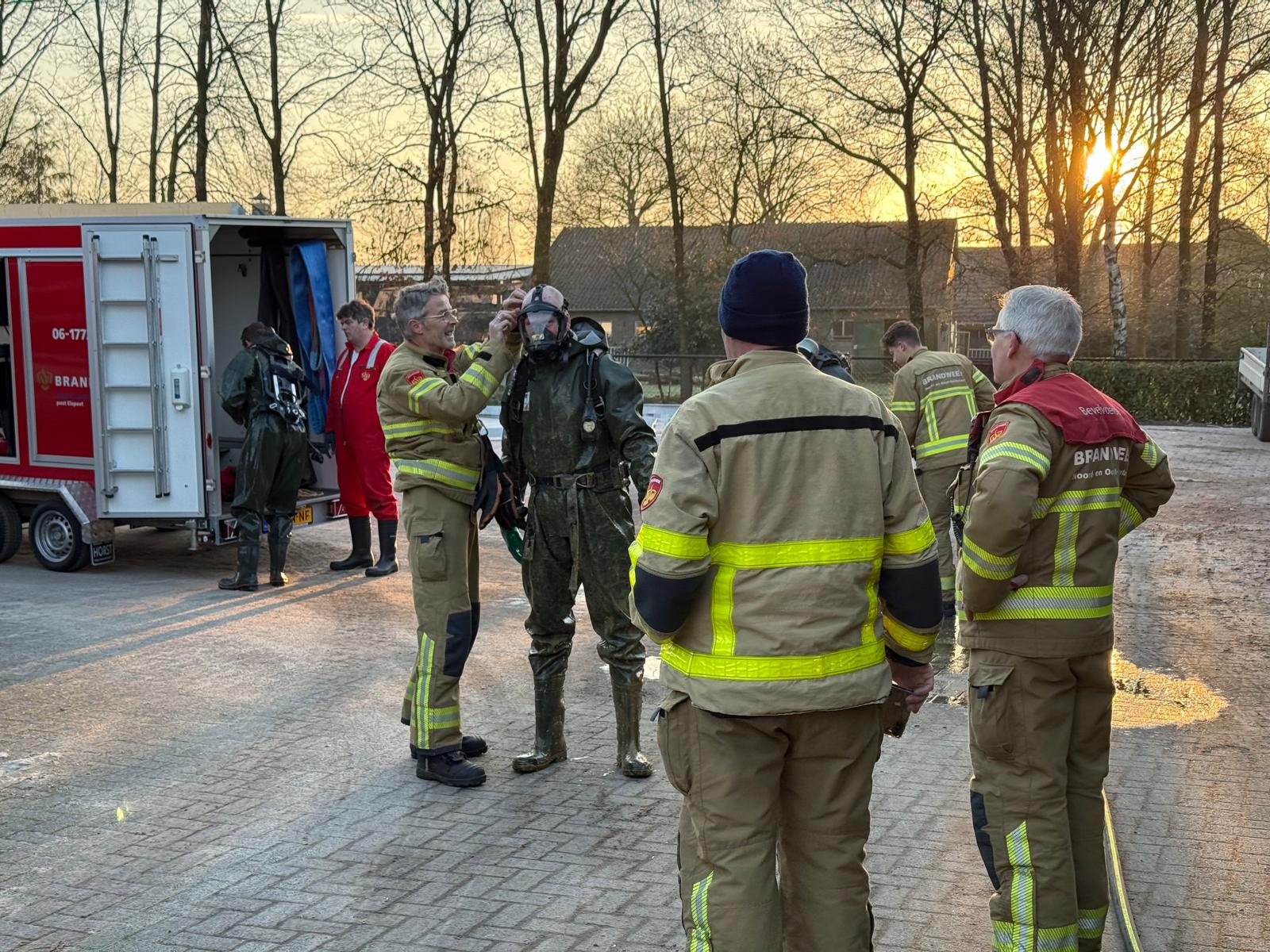 UDDEL – Donderdagochtend vroeg is Brandweer Elspeet opgeroepen voor de melding dier in put/kelder aan de Harderwijkerweg in Uddel. Ter plaatse moesten er 3 kalveren gered worden uit de put. In samenwerking met Brandweer Uddel zijn de beesten gezond en wel uit de put gehaald en weer op het droge gezet.