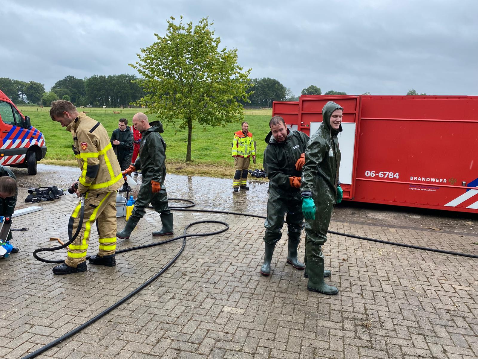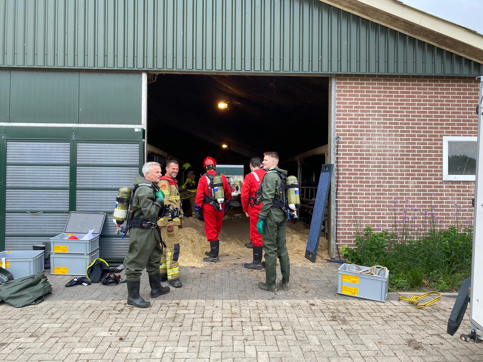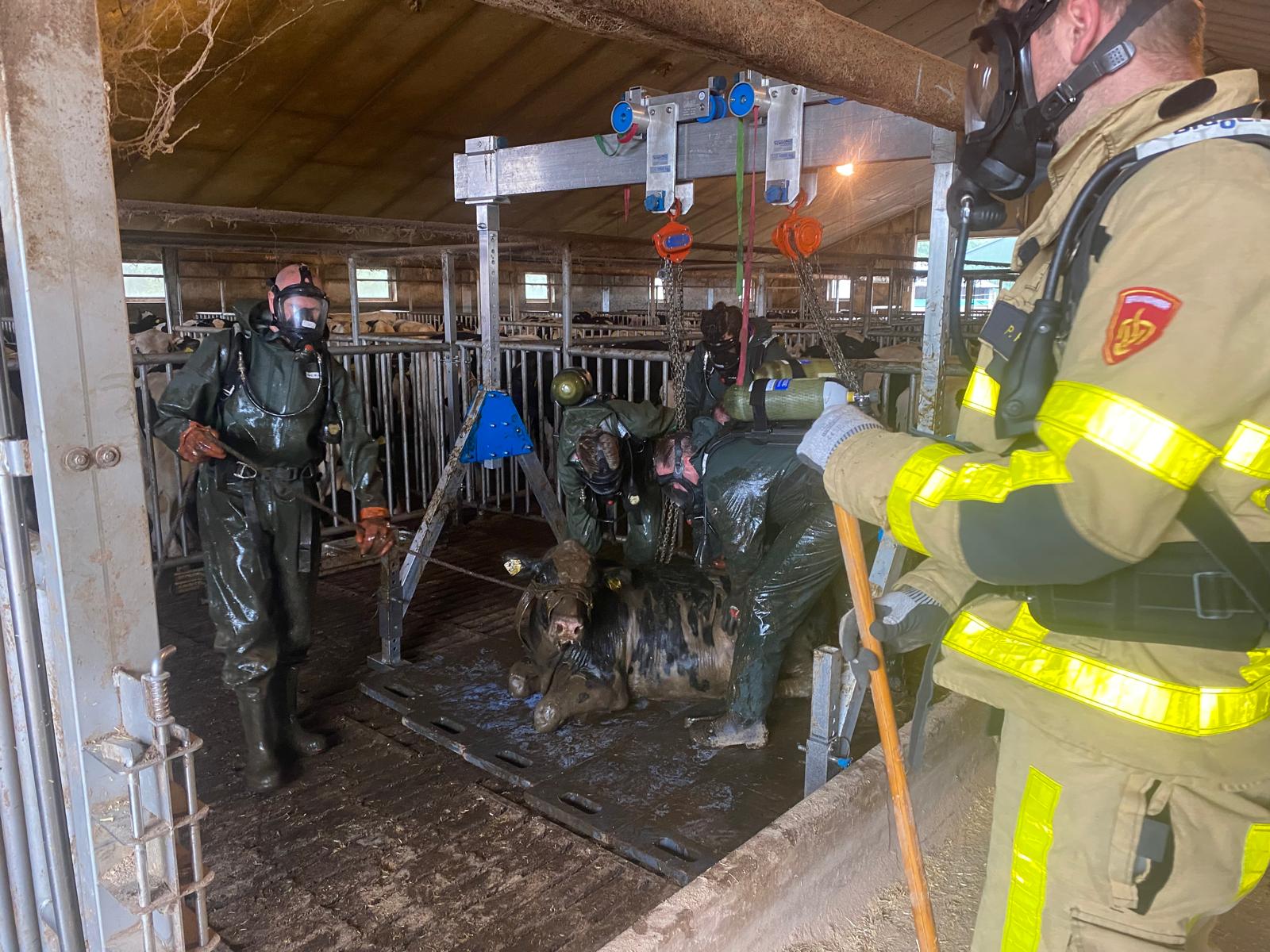 UDDEL – Vanochtend werden Brandweer Elspeet en Brandweer Uddel opgepiept voor een melding ‘Dier in put/kelder’ aan de Veenkamp in Uddel. Ter plaatse bleek dat het om meerdere kalveren ging die gered moesten worden met behulp van de veetakel. Een uitdagende klus waarin hard gewerkt werd om de dieren weer op het droge te krijgen.
