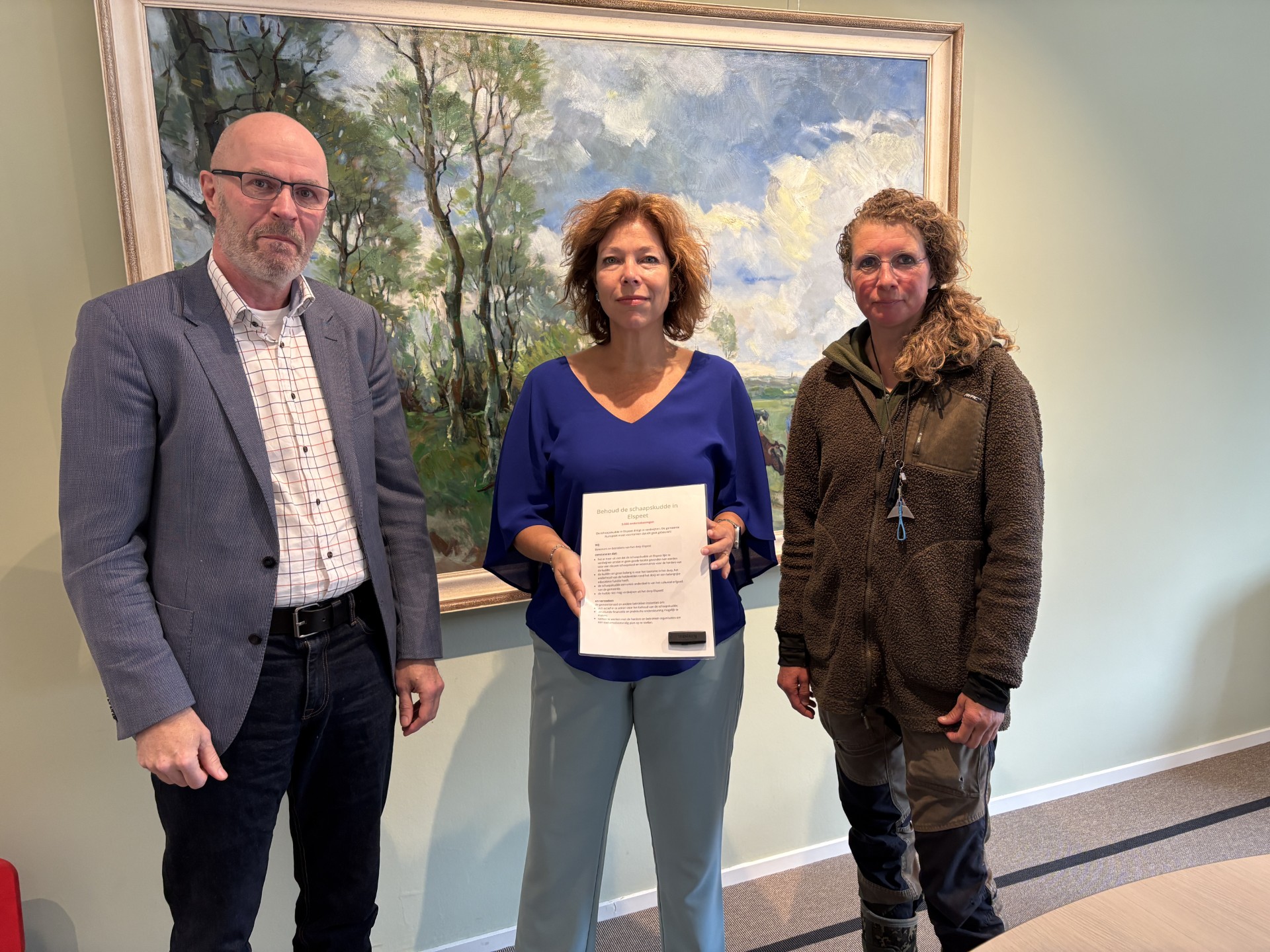 ELSPEET – De toekomst van de Elspeetse schaapskudde staat onder druk. Door het ontbreken van een geschikte locatie voor een nieuwe schaapskooi en woonruimte voor de herders dreigt de kudde uit het dorp te verdwijnen. Een doemscenario, vinden veel inwoners en bezoekers. Op maandag 26 mei bood initiatiefnemer Rick Sulman een petitie aan met 5.500 handtekeningen aan burgemeester Celine Blom om de kudde te redden. Zij nam de handtekeningen in ontvangst namens het college van burgemeester en wethouders. Herderin Daphne van Zomeren was hierbij aanwezig. De burgemeester vermeldde dat het onderwerp binnenkort in het college besproken zal worden. Volgens de ondertekenaars is de schaapskudde van groot belang voor Elspeet. De dieren dragen bij aan het onderhoud van de omliggende heidevelden, trekken toeristen naar het dorp en spelen een waardevolle rol in educatie. Bovendien is de kudde een belangrijk onderdeel van het cultureel erfgoed van de regio. In de petitie wordt de gemeenteraad en andere betrokken partijen opgeroepen om zich actief in te zetten voor het behoud van de kudde. De ondertekenaars vragen om financiĆ«le en praktische steun en pleiten voor samenwerking met herders en betrokken organisaties om tot een duurzaam toekomstplan te komen. De Elspeetse schaapskudde is niet alleen een herkenbaar beeld in het landschap, maar ook een levend symbool van de band tussen natuur, cultuur en gemeenschap. De hoop is groot dat die band behouden blijft.