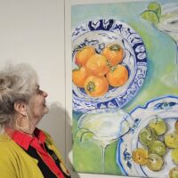 De stillevens hebben een heel ander onderwerp: tafels gedekt met oesters, mosselen, garnalen, citroenen, sinaasappels en wijnglazen. Ingrid: “Marjan stelt de compositie samen door te spelen met gemaakte foto’s. Ze combineert net zo lang met verschillende delen tot ze het begin van een schilderij ziet, waarbij ze goed kijkt naar kleur en lichtval.”