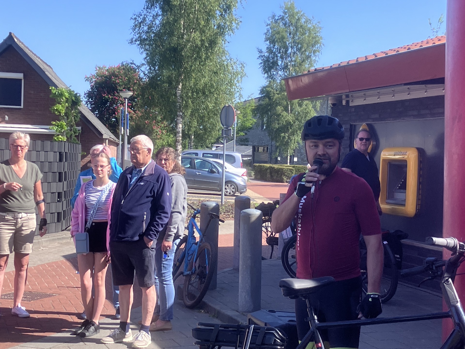 Wethouder Wichert Stoffer gaf om 10.30 uur het startsein voor de fietstocht en fietste zelf mee op zijn mountainbike.