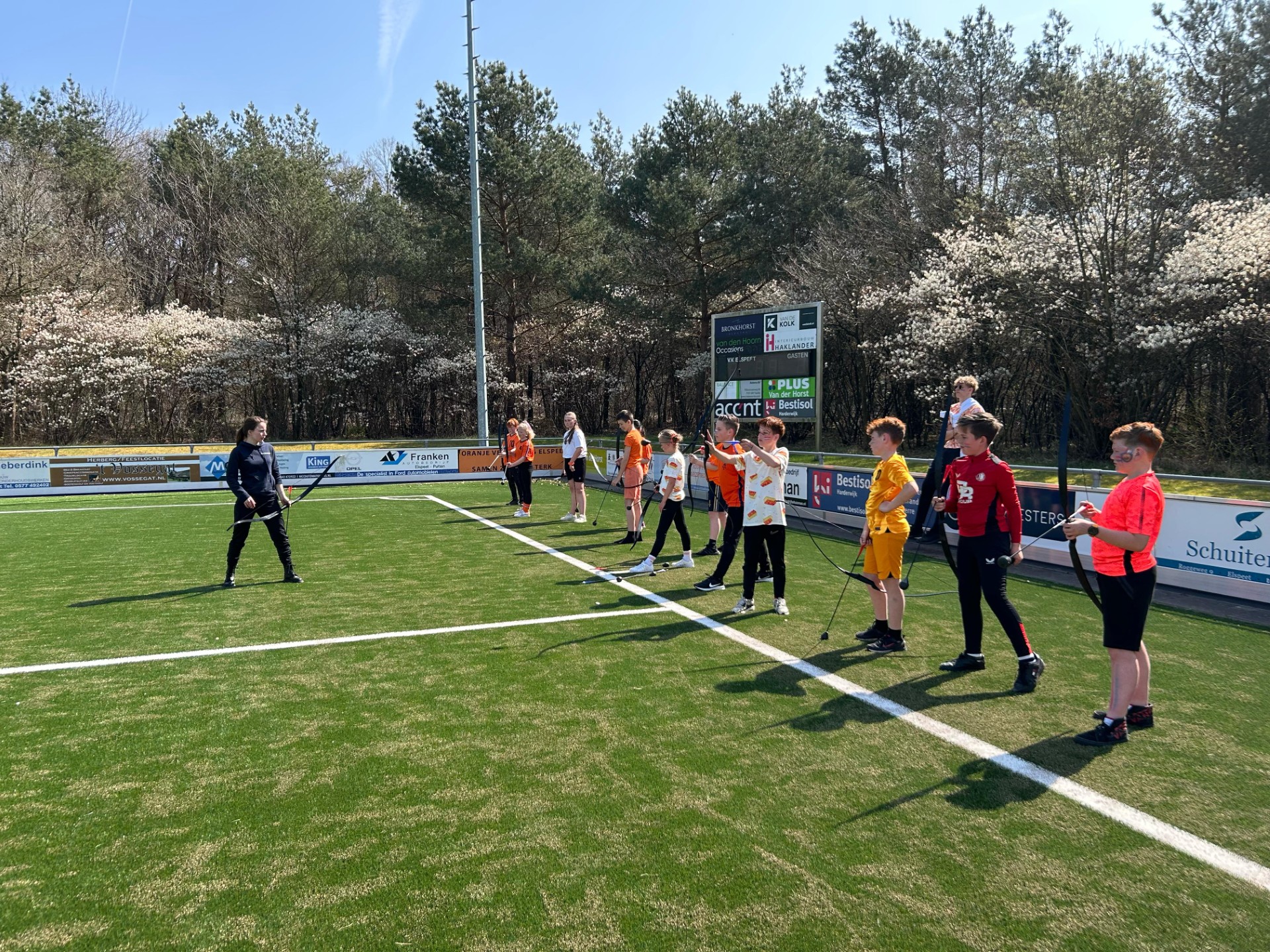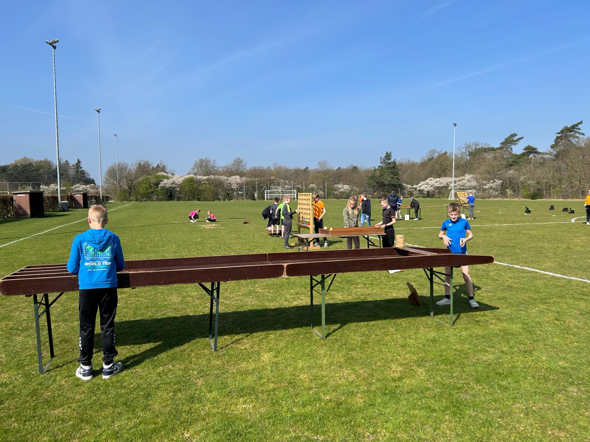 ELSPEET – Vrijdag 11 april kleurde het Sportpark Op De Heide in Elspeet alvast oranje. De Gemeente Nunspeet heeft besloten om de Koningsspelen dit jaar over 2 dagen te verdelen. Op vrijdag 11 april was Elspeet alvast aan de beurt op een prachtige, zonnige dag. Ruim 170 leerlingen van de Boaz Jachinschool en de Da Costa school speelden deze dag mee met o.a. boogschieten, korfbal en volleybal. Er waren 7 verschillende onderdelen op het sportveld die gericht waren op samenwerking, beweging maar ook op het hebben van veel plezier.