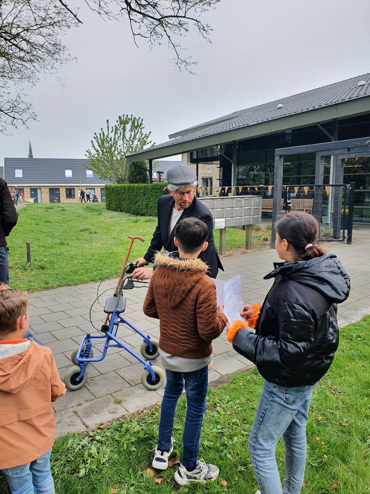 ELSPEET – Op Koningsdag werd om 9.00 uur ’s ochtends de vlag gehesen op het schoolplein van de Boaz-Jachinschool door twee tieners. Wethouder Stoffer heette iedereen welkom en er werden een paar prachtige Koningsdag klassiekers gezongen, begeleid door een afvaardiging van het Elspeets Fanfare korps. Daarna startte de enerverende vossenjacht door het dorp. Wat een belevenis voor jong en oud! Tijdens de jacht konden er bij de brandweer nog wat vuur geblust worden door de kids. Na de vossenjacht was er bij ‘t Kulturhus de prijsuitreiking tijdens de jaarlijkse aubade, die ook dit jaar weer druk bezocht werd. De Elspeetse dorpsbewoners danken alle vrijwilligers van Vrij Spel, de Elspeetse fanfare en ook de ouderraad van de Boaz-Jachinschool die zich ingezet hebben om dit leuke ochtendprogramma voor de kinderen te organiseren!