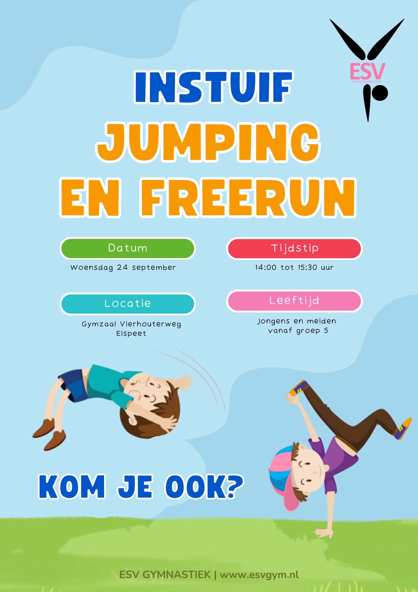 ELSPEET – Binnenkort organiseert ESV een jumping en freerun instuif, zie de flyer in de bijlage. Kom je ook?