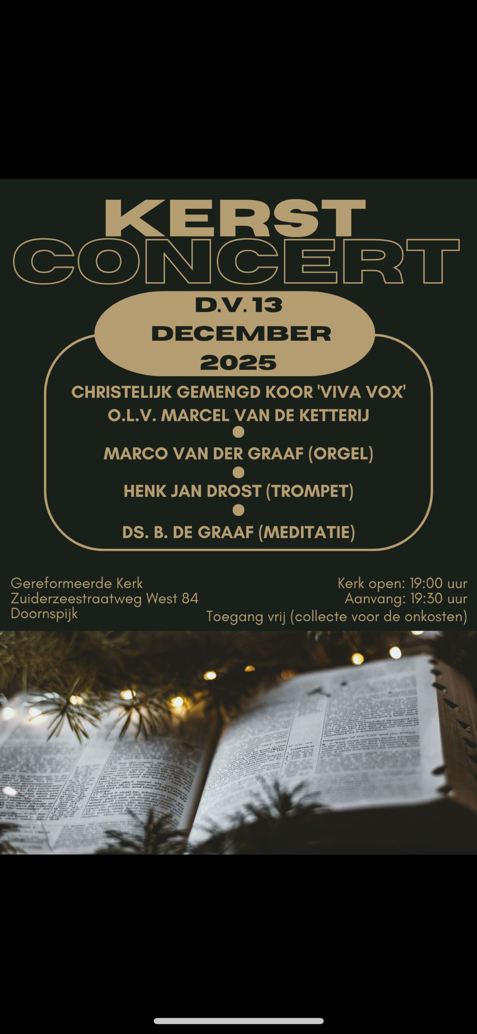 ELSPEET – D.V. zaterdag 13 december organiseert Viva Vox een kerstconcert in de gereformeerde kerk in Doornspijk. De toegang is vrij. Lees alle informatie op de flyer.