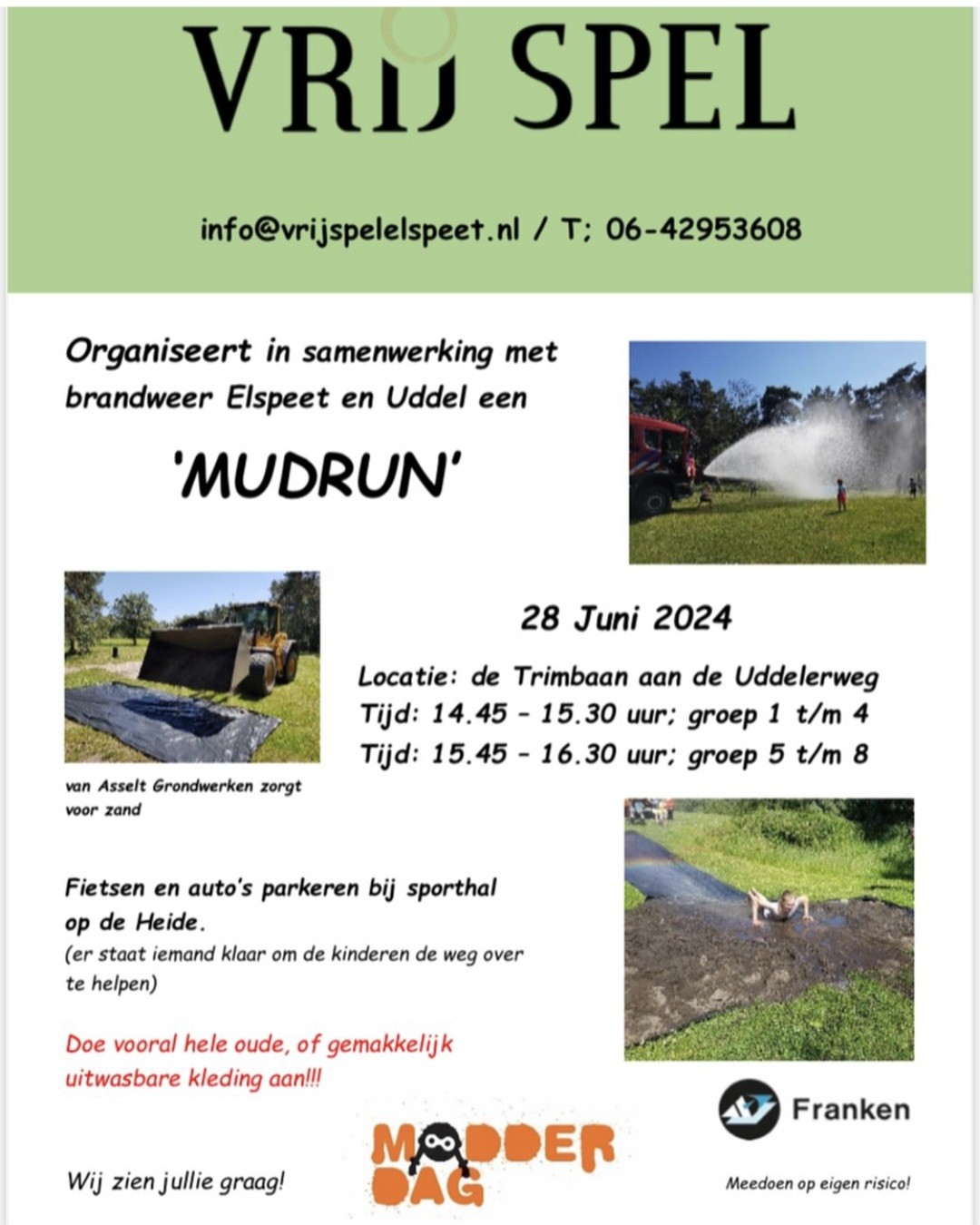 ELSPEET- Vrij Spel organiseert in samenwerking met Brandweer Elspeet en Brandweer Uddel de 5e editie Mudrun voor kinderen.