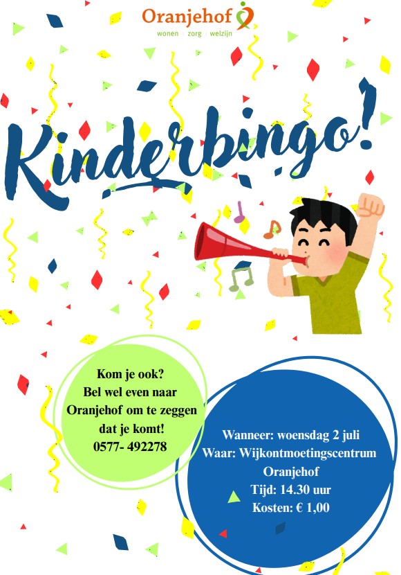 ELSPEET – Kom 2 juli om 14.30 uur naar de Bingomiddag bij de Oranjehof. Graag van tevoren even aanmelden, zie flyer.
