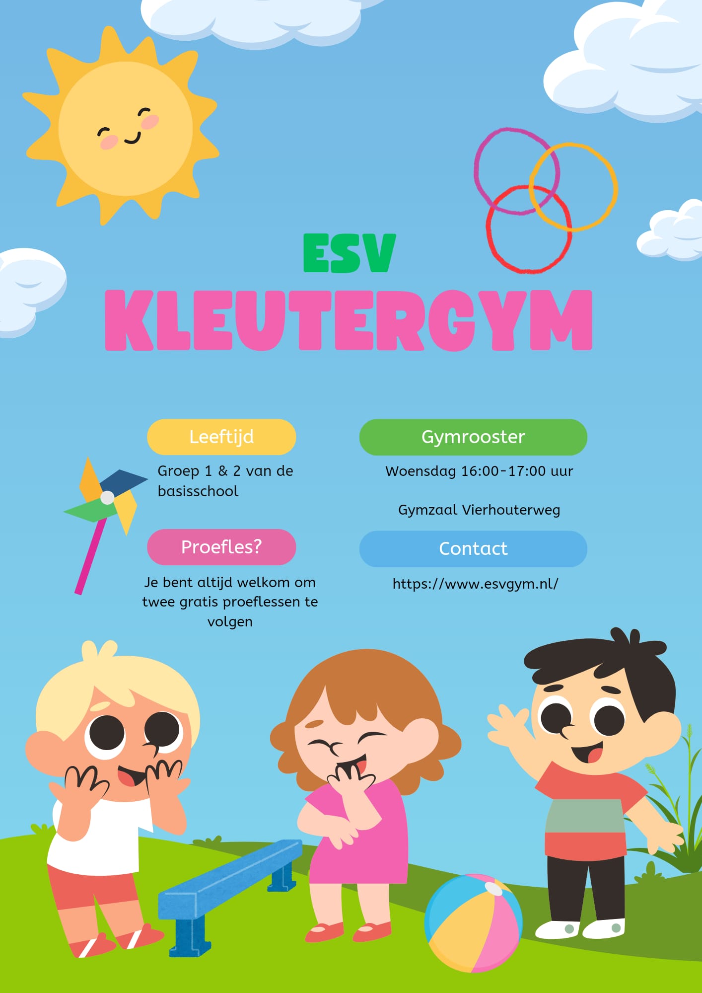 ELSPEET – ESV organiseert kleutergym op woensdagmiddagen van 16.00 uur tot 17.00 uur. Een leuke belevenis voor jouw kleuter (s). Lees verdere informatie op onderstaande flyer.