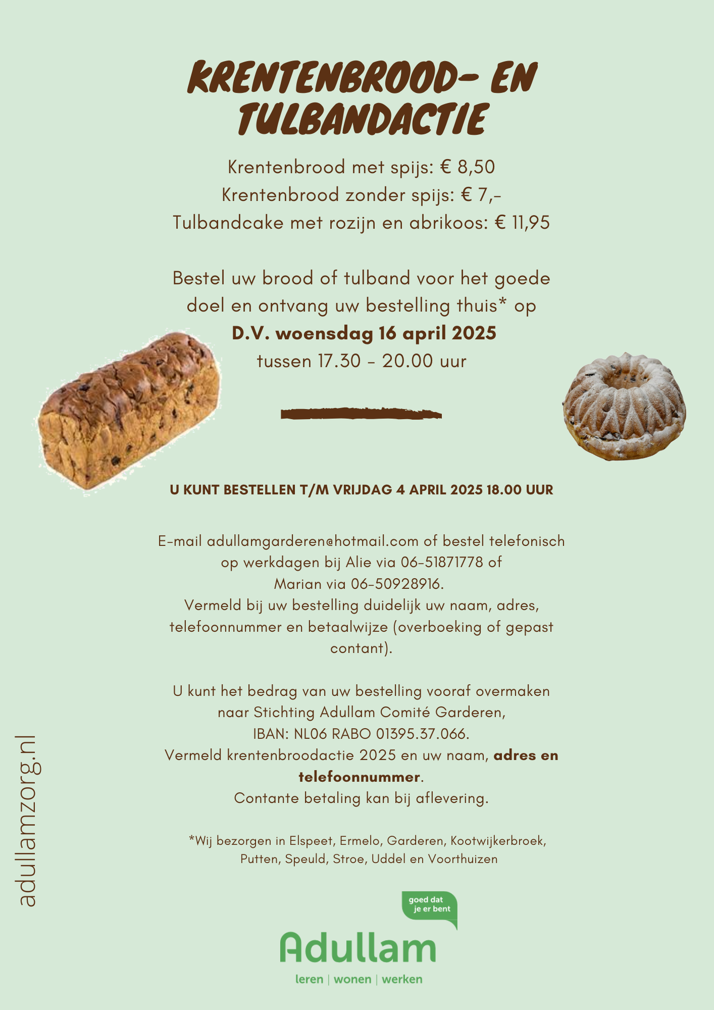 ELSPEET – Bestel uw krentenbrood of tulband voor het goede doel en ontvang uw bestelling thuis op D.V. woensdag 16 april 2025. Lees alle informatie op onderstaande flyer.