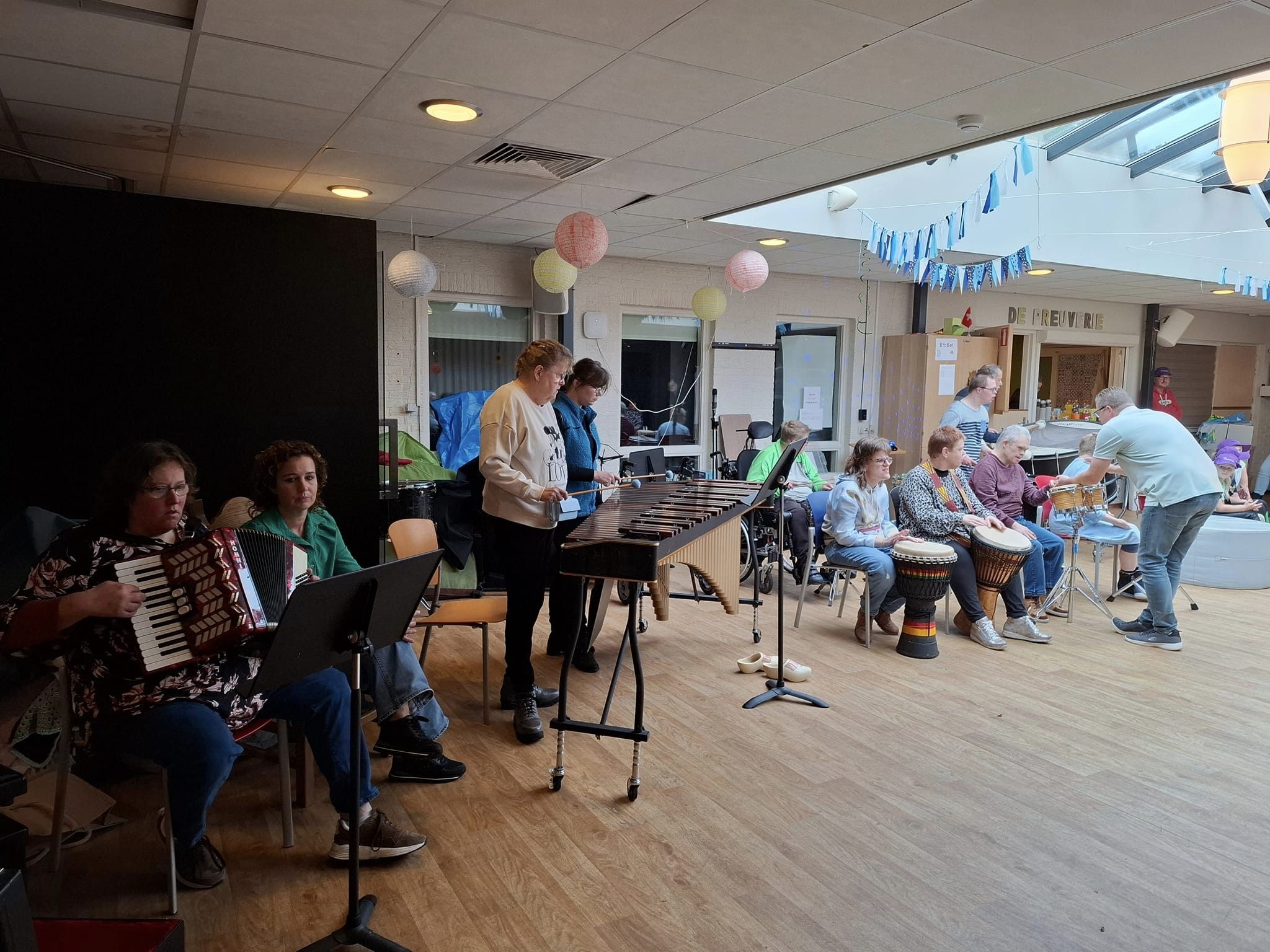 Als afsluiting traden zij nog eenmaal op, waarbij eenieder in de zaal die dat wou samen met hen muziek mocht maken. Het was een feest!