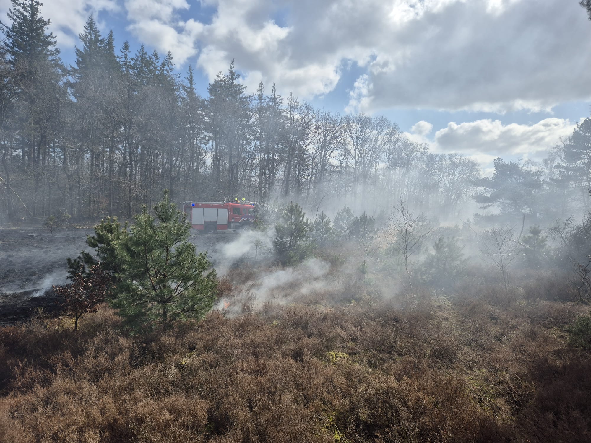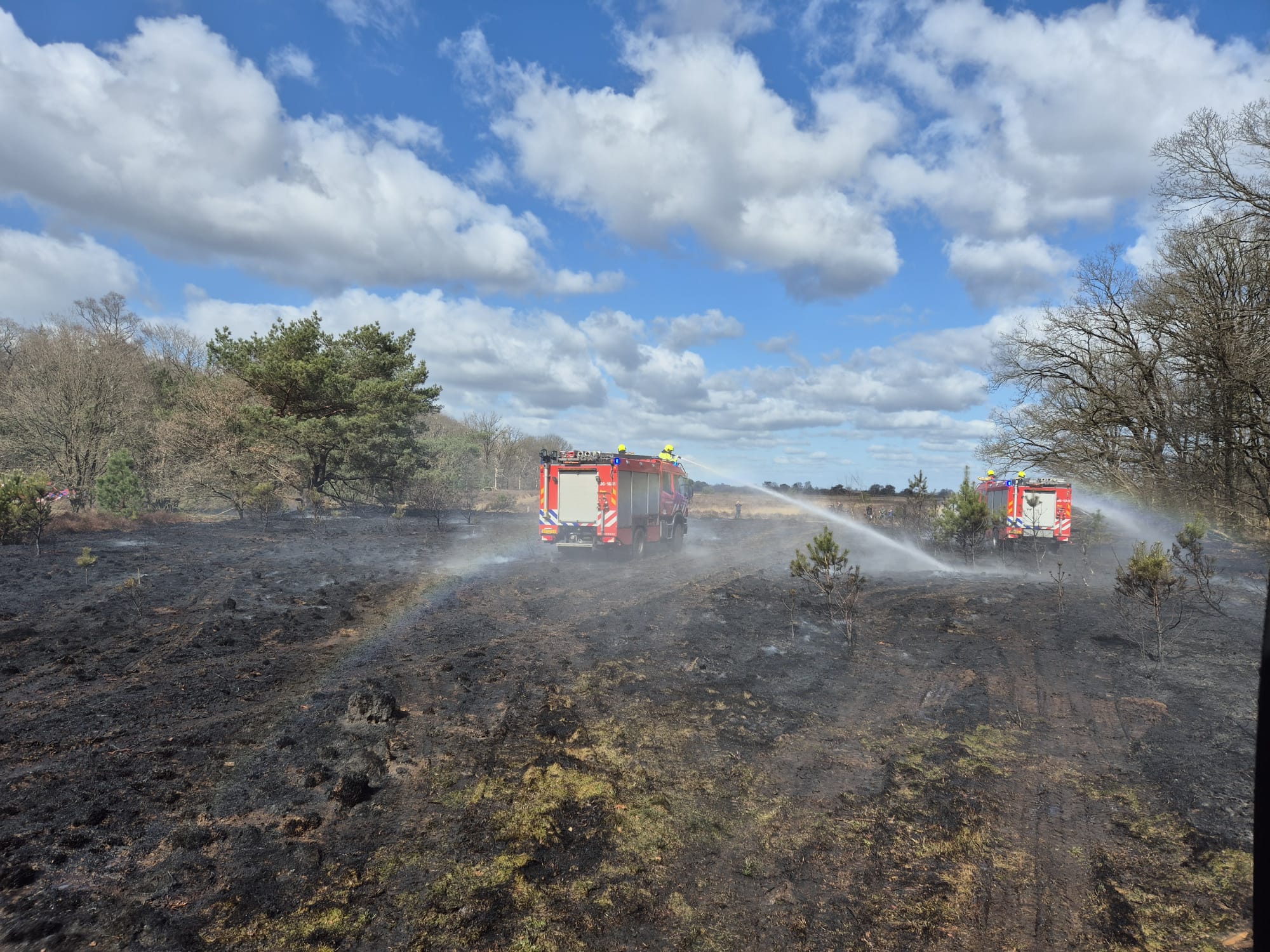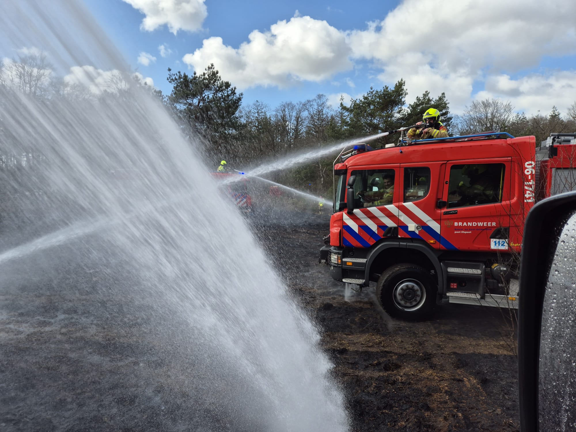 ELSPEET – Vanmiddag rond 14.50 uur werd een natuurbrand aan de Bosrand in Elspeet gemeld voor brandweer Elspeet en brandweer Uddel. Al snel werd opgeschaald naar nog meer blusvoertuigen om het vuur onder controle te krijgen. Het vuur kon zich door de droogte en wind snel verspreiden. Tijdens de brand werden twee jongens aangehouden.