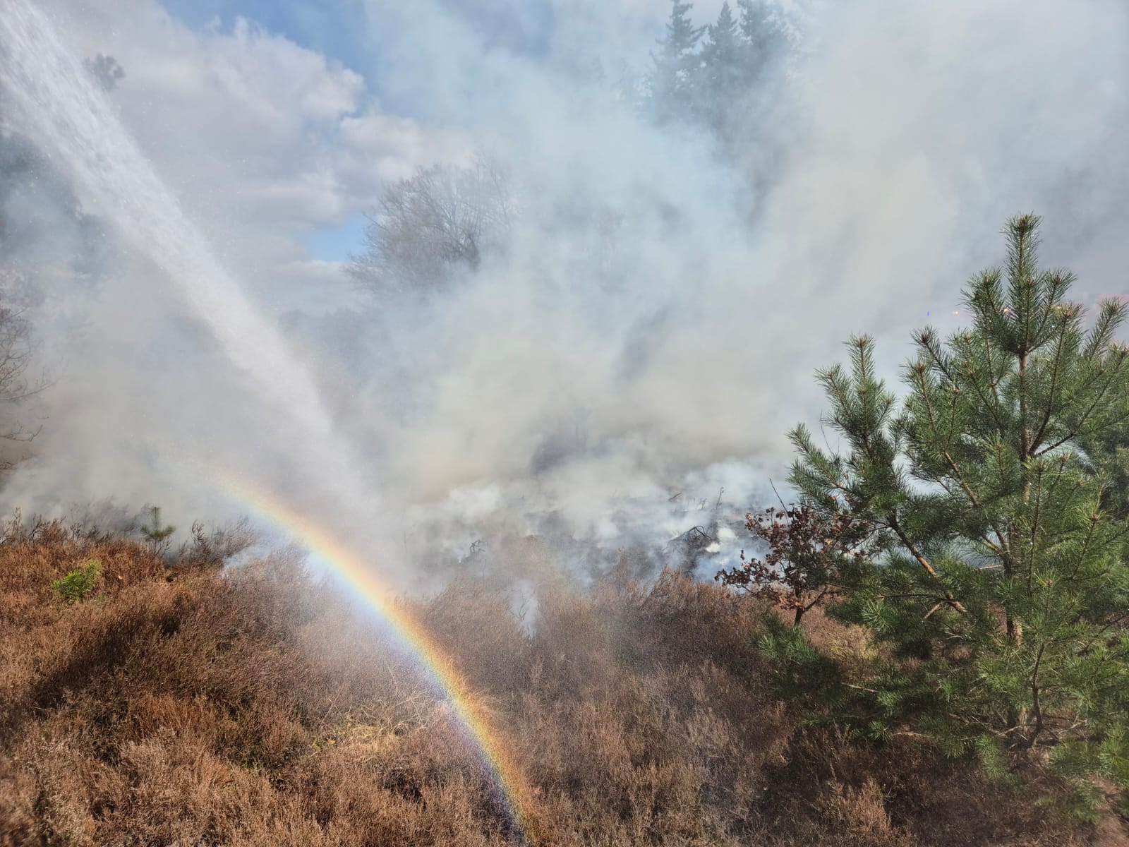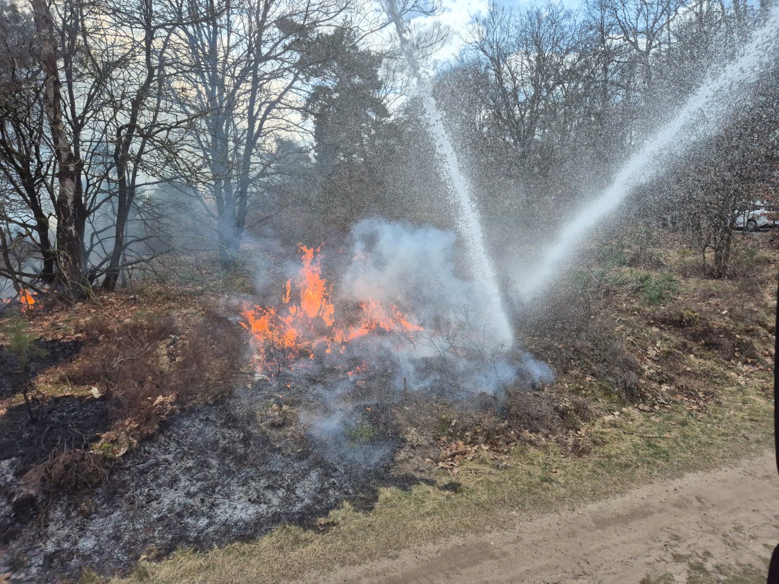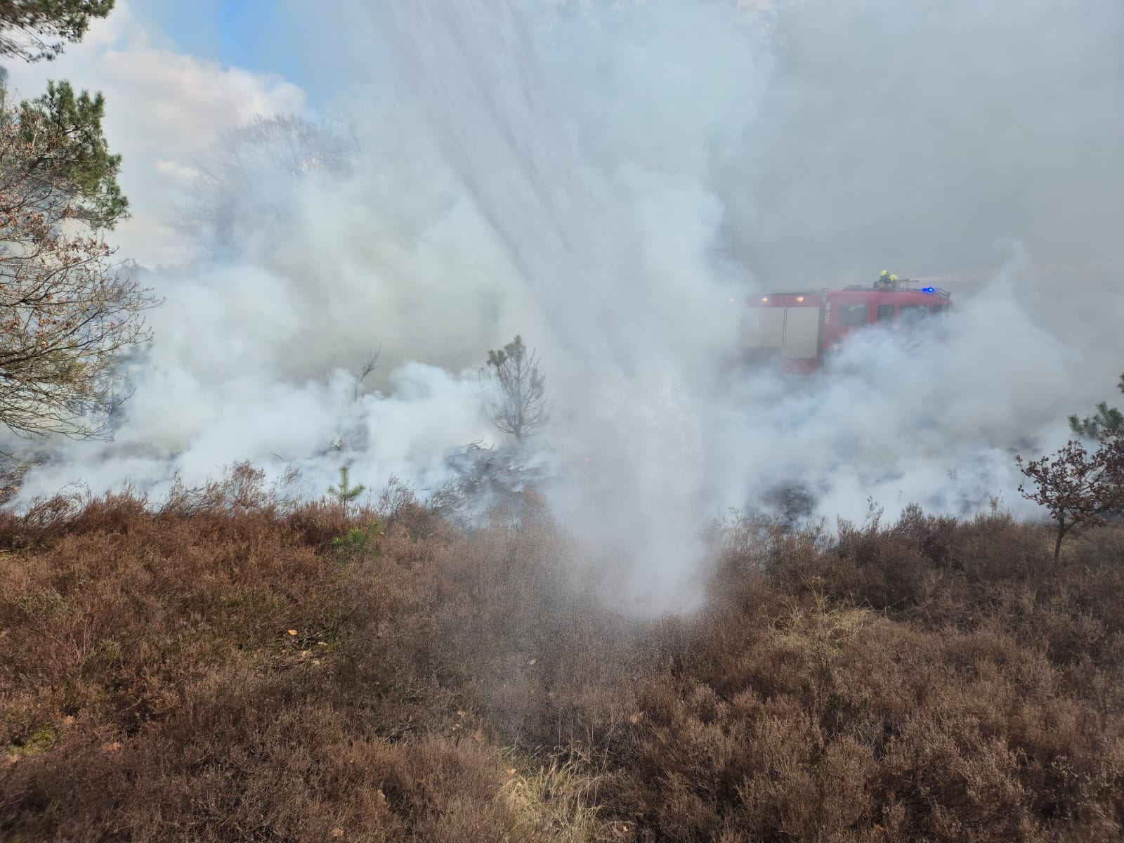ELSPEET – Vanmiddag rond 14.50 uur werd een natuurbrand aan de Bosrand in Elspeet gemeld voor brandweer Elspeet en brandweer Uddel. Al snel werd opgeschaald naar nog meer blusvoertuigen om het vuur onder controle te krijgen. Het vuur kon zich door de droogte en wind snel verspreiden. Tijdens de brand werden twee jongens aangehouden.