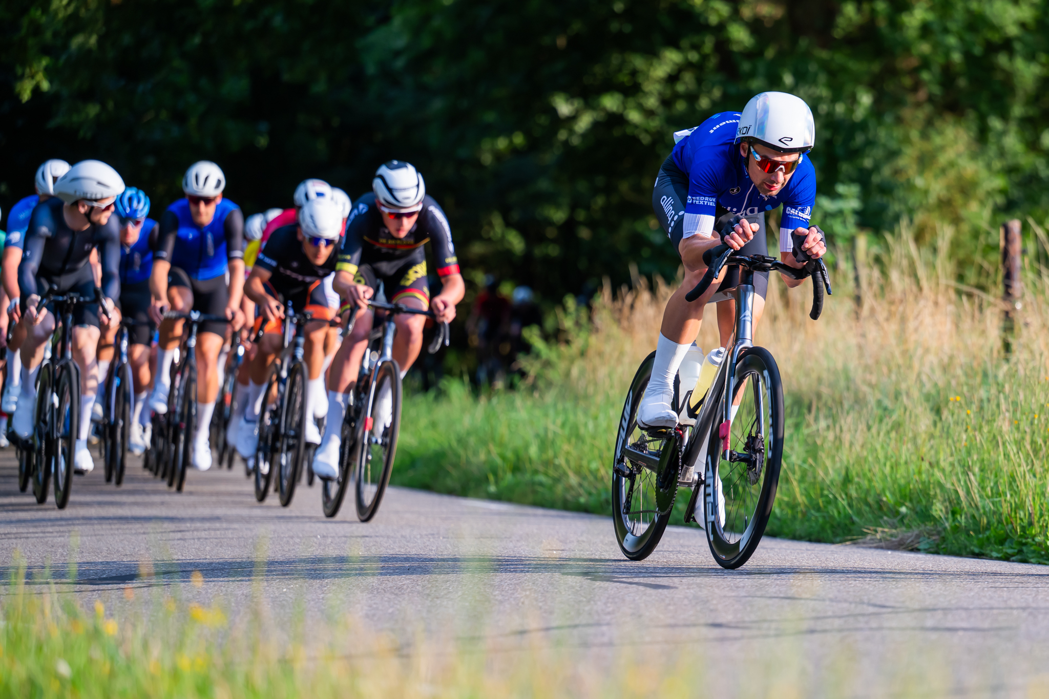 Een gemiddelde van 47,2 kilometer per uur meer dan 80 kilometer volhouden voelde ook voor Bogerd als een lange tijdrit. “Het was nog heel ver weg. De enige manier omdat te laten lukken is dat onze ploeg het peloton afstopt. Zelf hebben we volle bak gereden, vooral vanaf het moment dat ze op 30 seconden kwamen. Het peloton zat ook ‘choco’. Het is een rare koers, er wordt heel hard gereden. Het oplopende stukje na de finish ligt mij echt niet, daar was hij (Jitse Breeuwsma) heel sterk in. Richting het einde kon ik wat meer doen.”