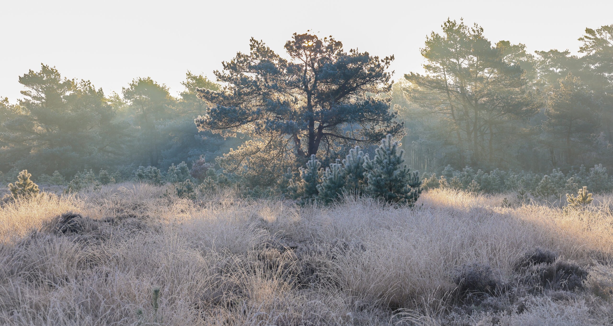 ELSPEET – Ook in februari heeft Ruben weer mooie plaatjes geschoten in Elspeet en omgeving. Tijdens een wandeling door het bos zag hij hoe de gouden gloed van de zon de boomstammen verwarmt. De heidevlakte was bedekt een dun laagje rijp.