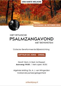 ELSPEET – Op zaterdag 26 oktober ben je van harte welkom voor een psalmzangavond in de Gereformeerde Gemeente in Nederland in Elspeet, Oude Hof.