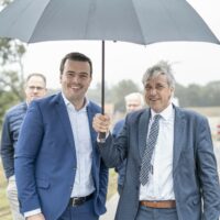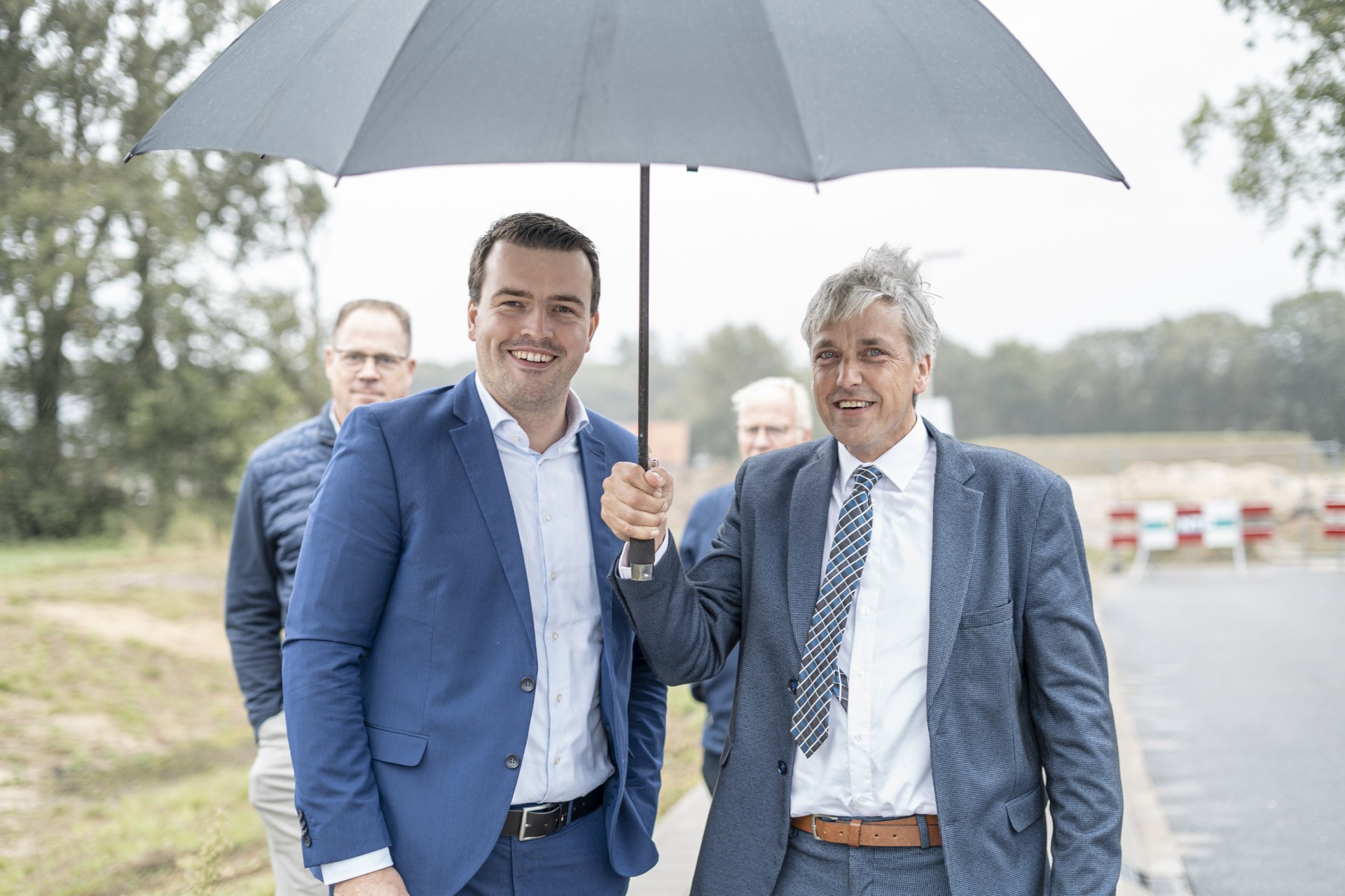 Foto: SGP-lijsttrekker Harm Jan Polinder met SGP-wethouder Jaap Groothuis tijdens een werkbezoek bij een ontwikkellocatie in de gemeente Nunspeet.