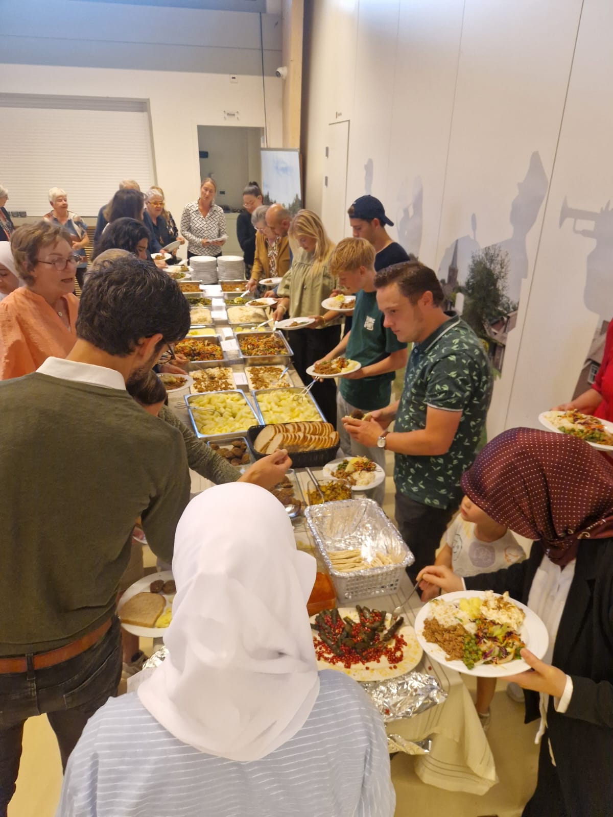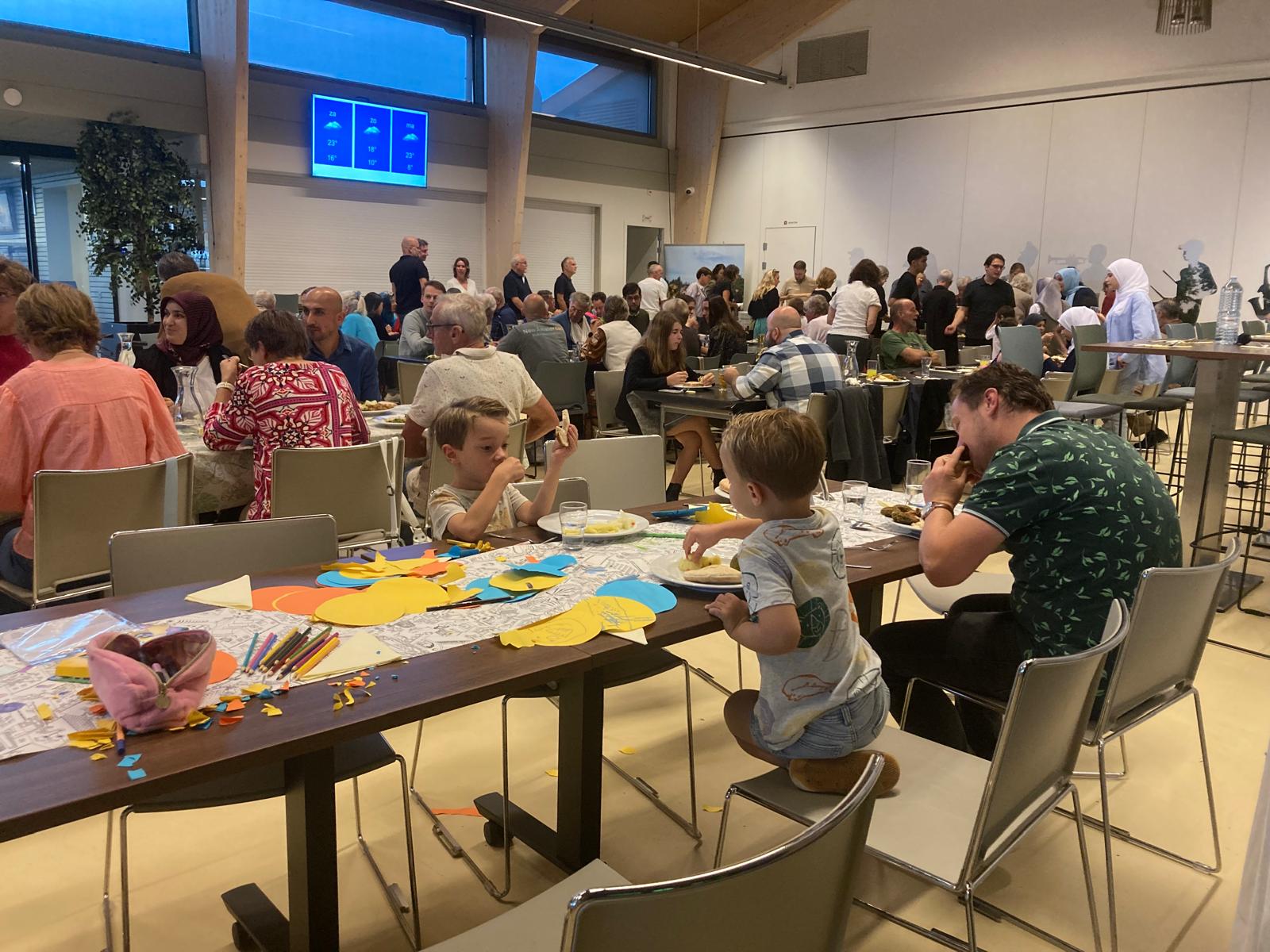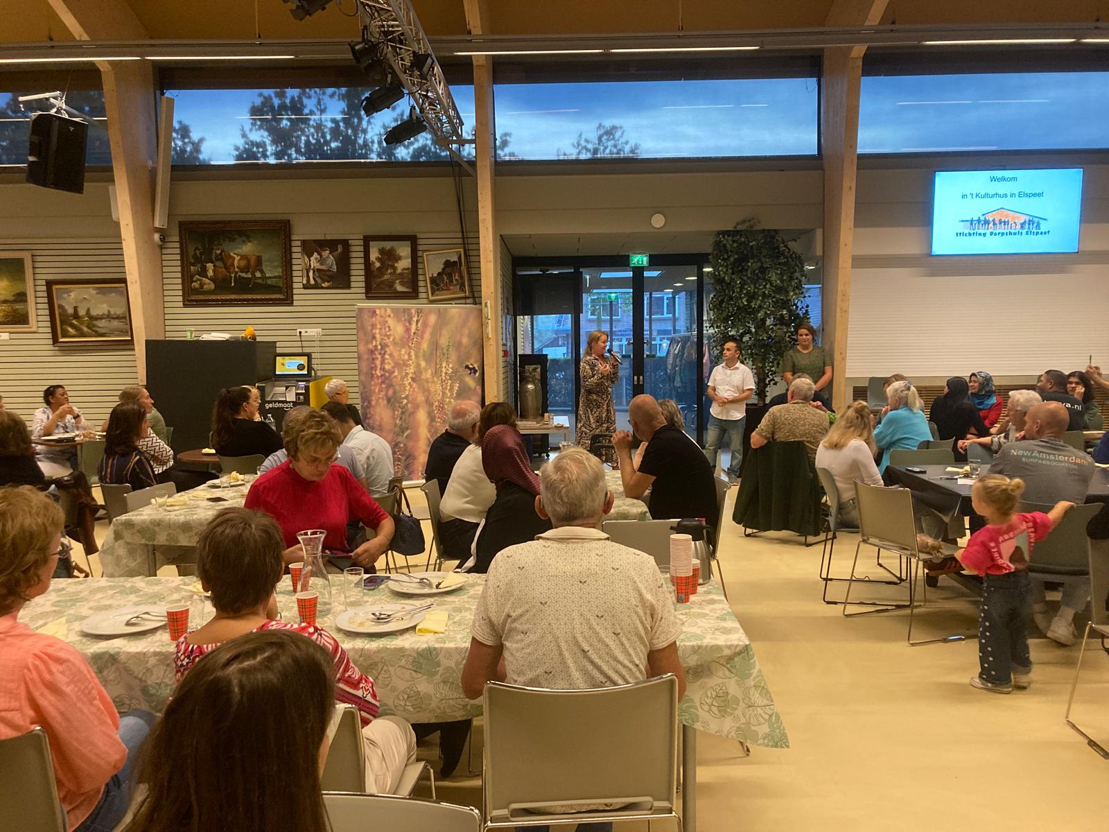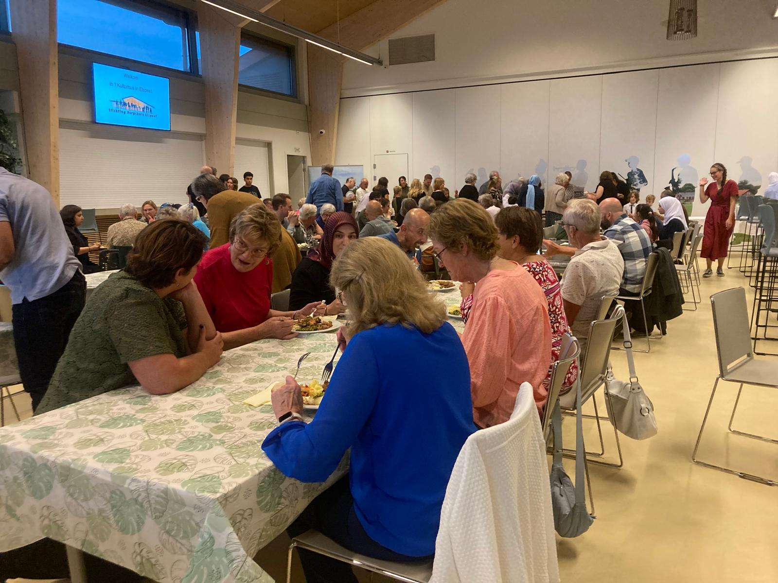 ELSPEET – Samen eten, die ander ontmoeten en samen leven: het stond centraal tijdens de multiculturele maaltijd in het Kulturhus op zaterdag 20 september. Wat was het genieten: een overheerlijke Turkse maaltijd, gecombineerd met Israëlische falafel en Syrische gevulde courgette. Heerlijk frisse salades en natuurlijk baklava om het feest compleet te maken. Samen met 100 inwoners uit Elspeet werd de maaltijd gezamenlijk genuttigd. Johan van den Hoorn opende de avond met het lezen van een Bijbelgedeelte, en na het gebedsmoment werd er eerst heerlijke linzensoep geserveerd waarna het buffet geopend werd. Bijzonder fijn om zo met jong en oud elkaar te ontmoeten. Initiatiefneemster Alice van de Steeg kijkt terug op een geslaagde avond: ‘Ik ben vooral heel dankbaar dat zoveel mensen elkaar willen leren kennen. Dat geeft zoveel hoop!’