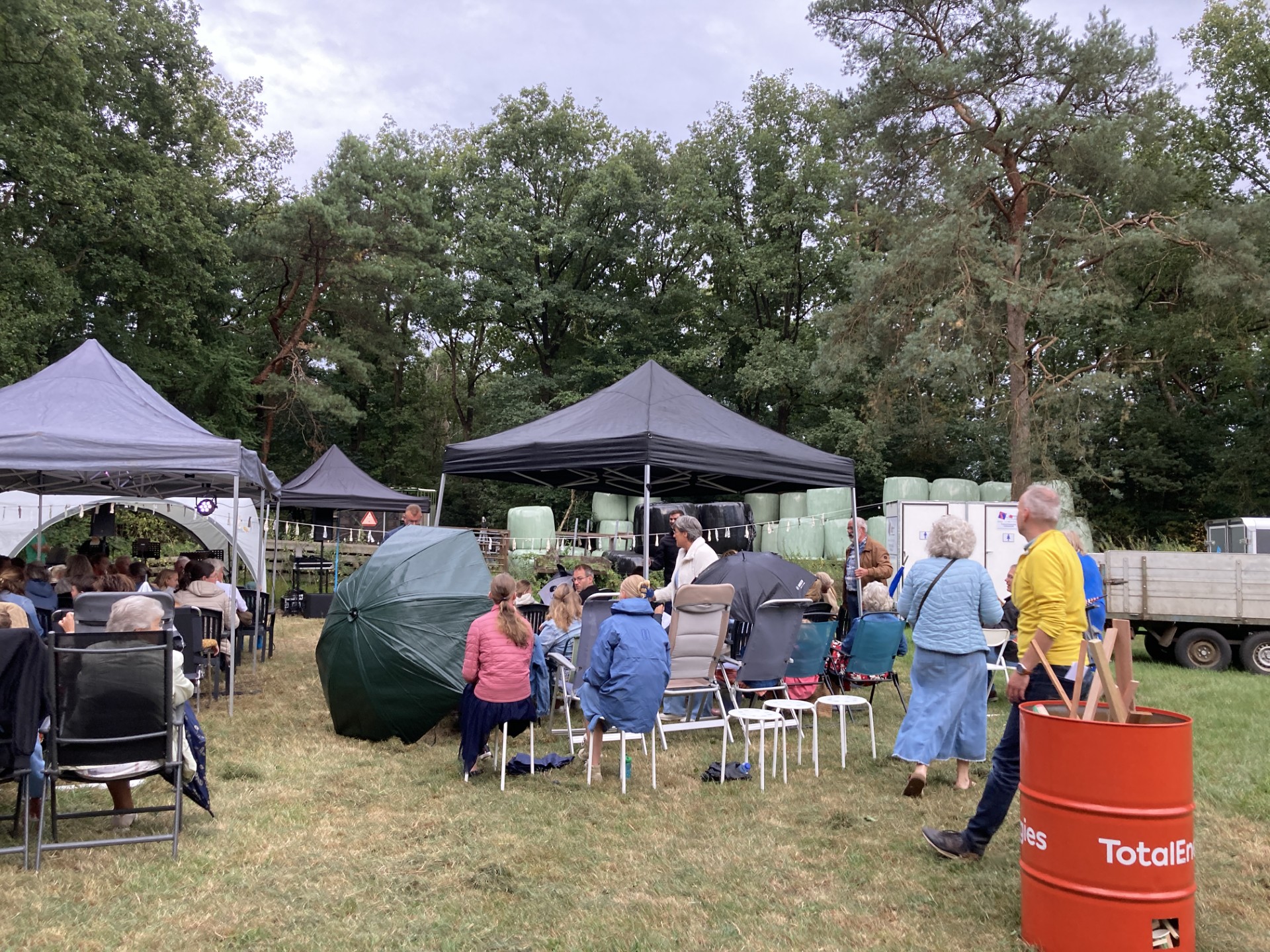 ELSPEET – Op vrijdagavond 29 augustus vond de derde sing-in plaats van ‘Samen zingen Elspeet.’ Deze keer zingend onder tenten en paraplu’s vanwege de behoorlijke regenval. Het maakte de opkomst en het zangplezier er niet minder om; de vele aanwezigen genoten van de onderlinge verbinding en de samenzang. Deze avond stonden diverse psalmen centraal, waaronder psalm 139, psalm 40, psalm 121 en psalm 130. De liederen werden afgewisseld met mooie inhoudelijke overdenkingen. Na het zingen was er gelegenheid voor ontmoeting bij het kampvuur. De organisatie kijkt terug op een geslaagde avond.
