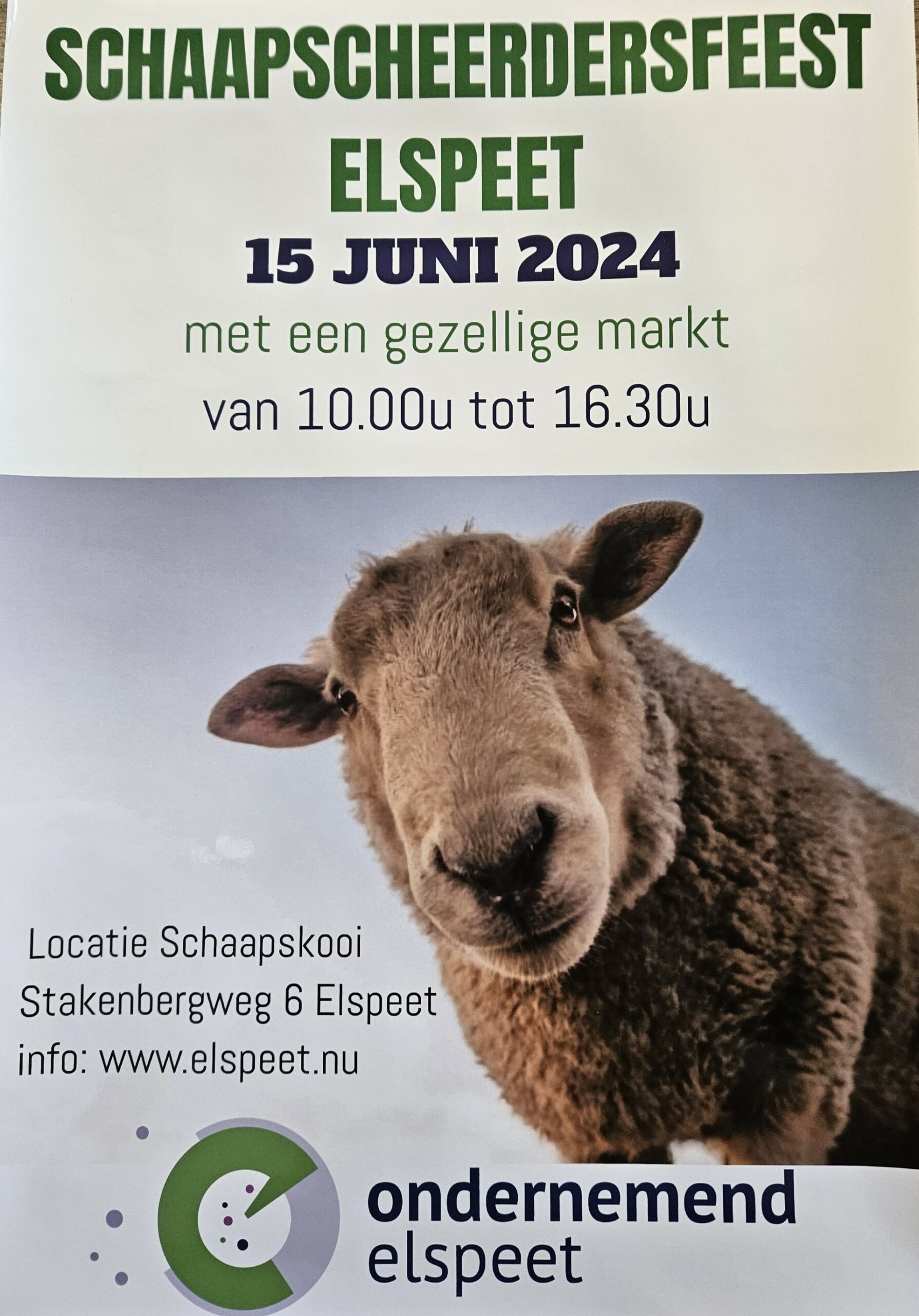 ELSPEET- Noteer 15 juni in de agenda en nodig vrienden, buren, kennissen en familie uit om mee te gaan naar het Schaapsscheerdersfeest. Rondom de kooi is er de hele dag een gezellige markt met meer dan 50 leuke kramen. De schapen van de schaapskudde worden op traditionele manier geschoren. Ook zijn er bij de kooi leuke kinderactiviteiten te beleven. Het Elspeet Fanfare Korps zal deze dag zorgen voor koude drankjes, broodjes hamburgers en knakworst. Ook zijn er poffertjes, vis en ijs te koop! Zo proberen we er samen weer een ouderwets gezellig Schaapsscheerdersfeest van te maken.
