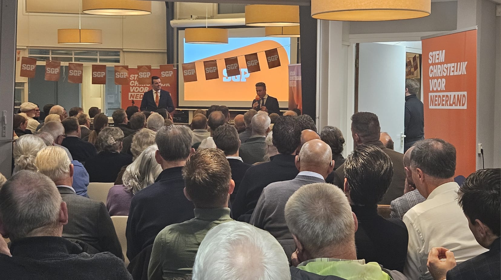 De dag werd afgesloten met een verkiezingsavond in Oranjehof, waar elke stoel bezet was en zelfs staanplaatsen nodig waren. Tijdens de bijeenkomst kwamen de drie SGP-Kamerleden aan het woord. Daarnaast zorgde een Kahoot-quiz voor de nodige ontspanning, maar tegelijk ook voor stevige stellingen waarin de standpunten van de SGP scherp naar voren kwamen. Chris Stoffer: “Het was een prachtig campagnedag waarin we hebben ervaren dat er heel veel steun is voor de SGP in de gemeente Nunspeet!”