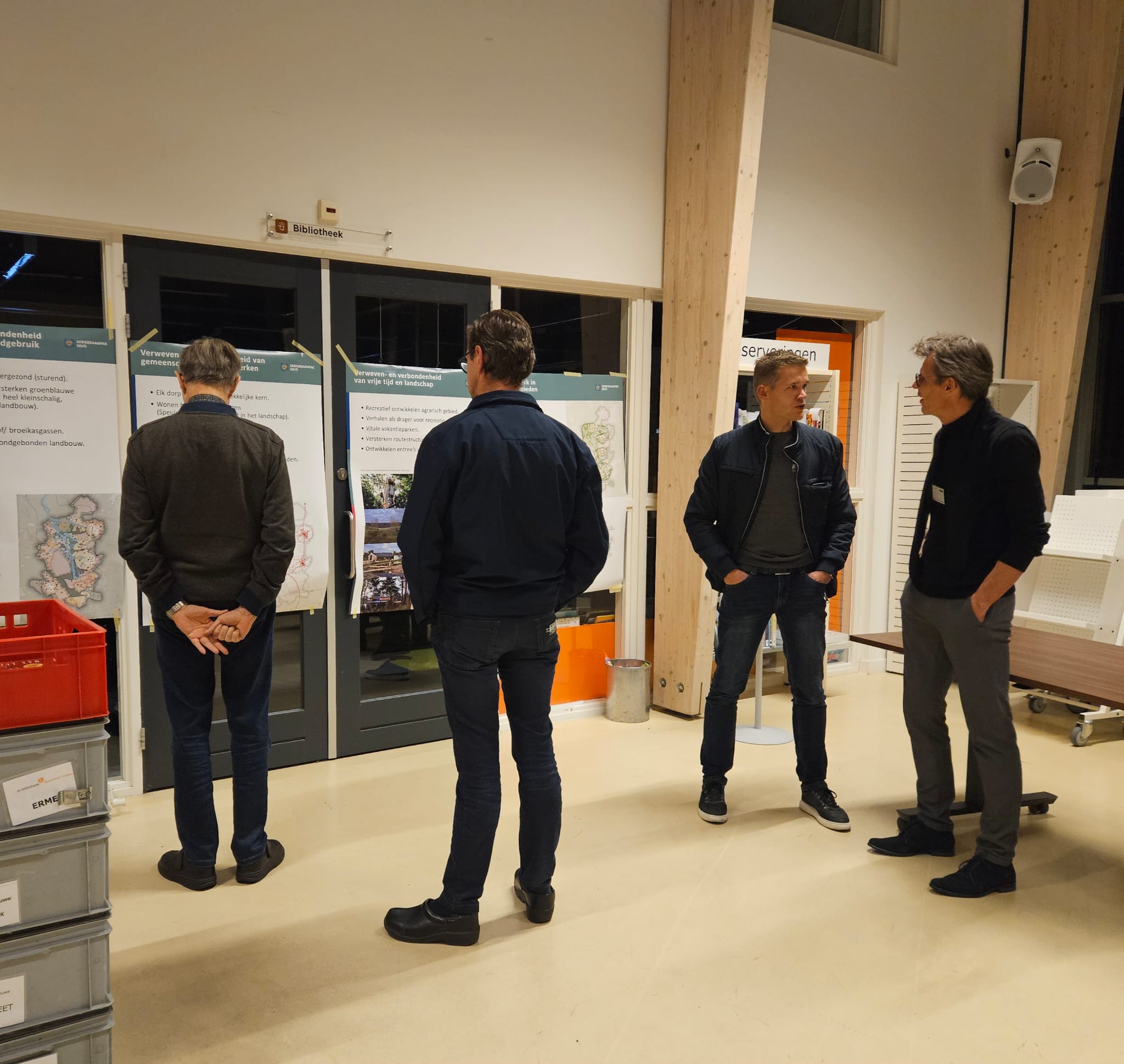Tijdens deze inloopavond werden mensen uit de kern Elspeet in de gelegenheid gesteld om kennis te nemen van het proces zoals dat tot nu toe verlopen is, welke ambities of wensen zijn opgesteld vanuit dit gebied en ook de aanwezige tegenstrijdige belangen die daarbij spelen. Denk aan de opgave om in dit gebied een forse stikstofreductie te realiseren en de wens om als agrariër of ondernemer de toekomst van je bedrijfsvoering te kunnen ontwikkelen. Complexe opgaven waarin het samenwerken tussen alle betrokkenen in dit gebied van groot belang is. De aanwezigen werden via verschillende informatieborden en posters geïnformeerd en konden voor meer uitleg of vragen terecht bij leden van het programmateam en leden van de verschillende werkgroepen (Natuur en water, Recreatie, Landbouw en Leefbaarheid). Een mogelijkheid waar door verschillende mensen uit de kern Elspeet gebruik van werd gemaakt.
