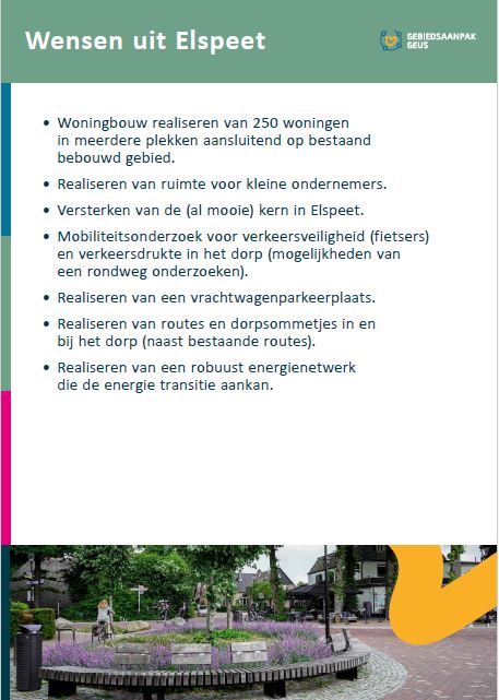 ELSPEET – Woensdagavond 16 oktober werd in het Kulturhus Elspeet een inloopavond georganiseerd door het programmateam van GEUS. Samen met inwoners, ondernemers, agrariërs en verschillende overheidspartijen werken zij aan een document waarin een gebiedsaanpak voor het gebied Garderen, Elspeet, Uddel en Speuld wordt uitgewerkt. Meer hierover is te lezen op de speciaal hiervoor ingerichte website Gebiedsaanpak GEUS. U kunt zich hier ook abonneren op een nieuwsbrief die regelmatig verschijnt en de voortgang en ontwikkeling deelt.