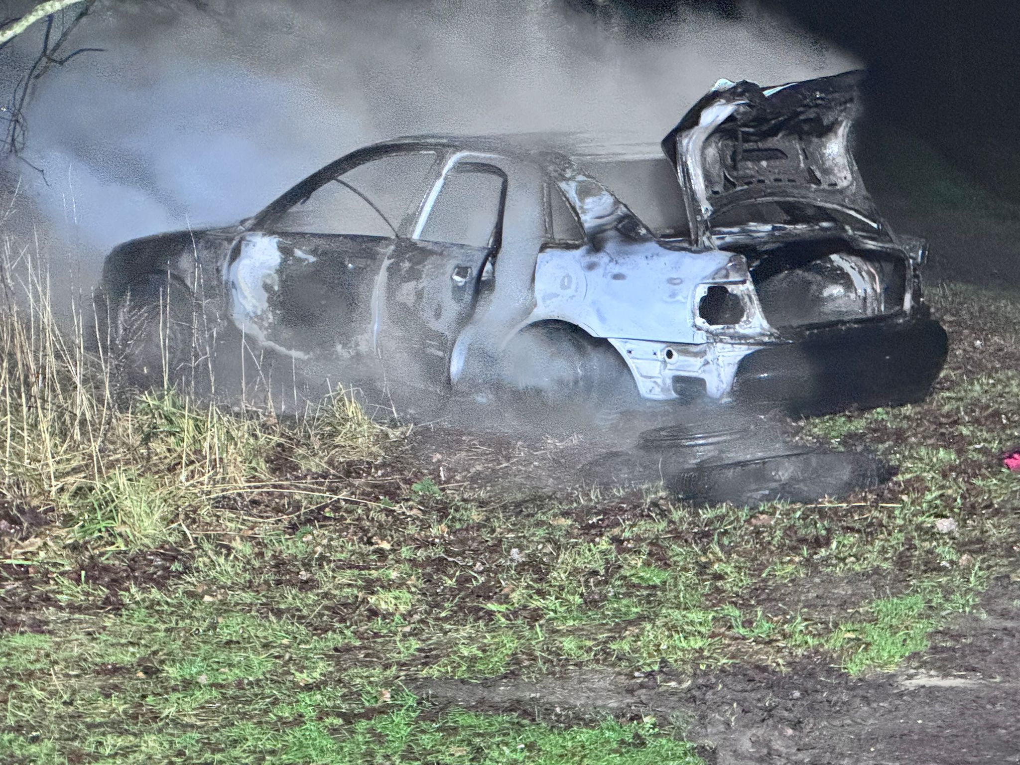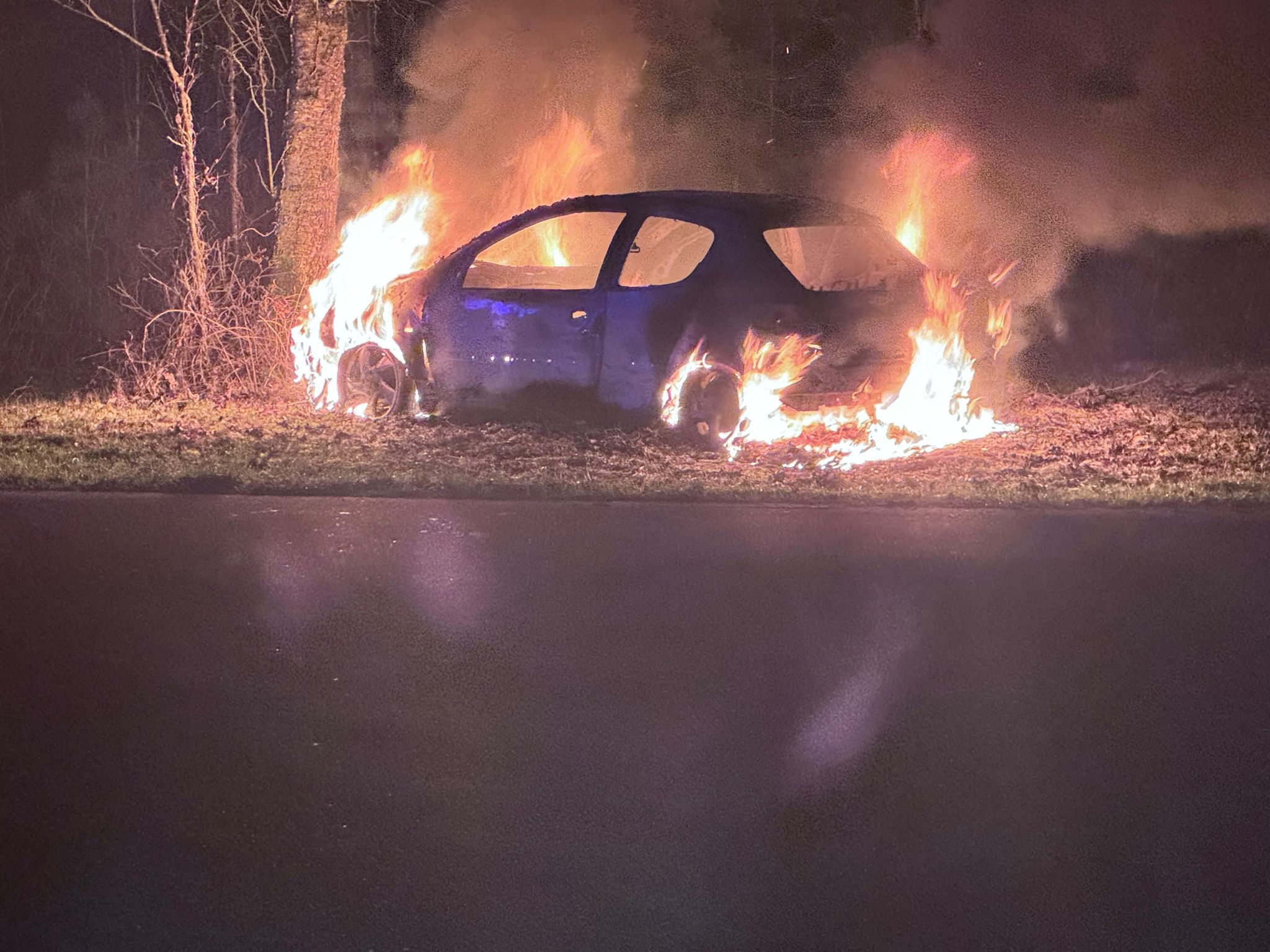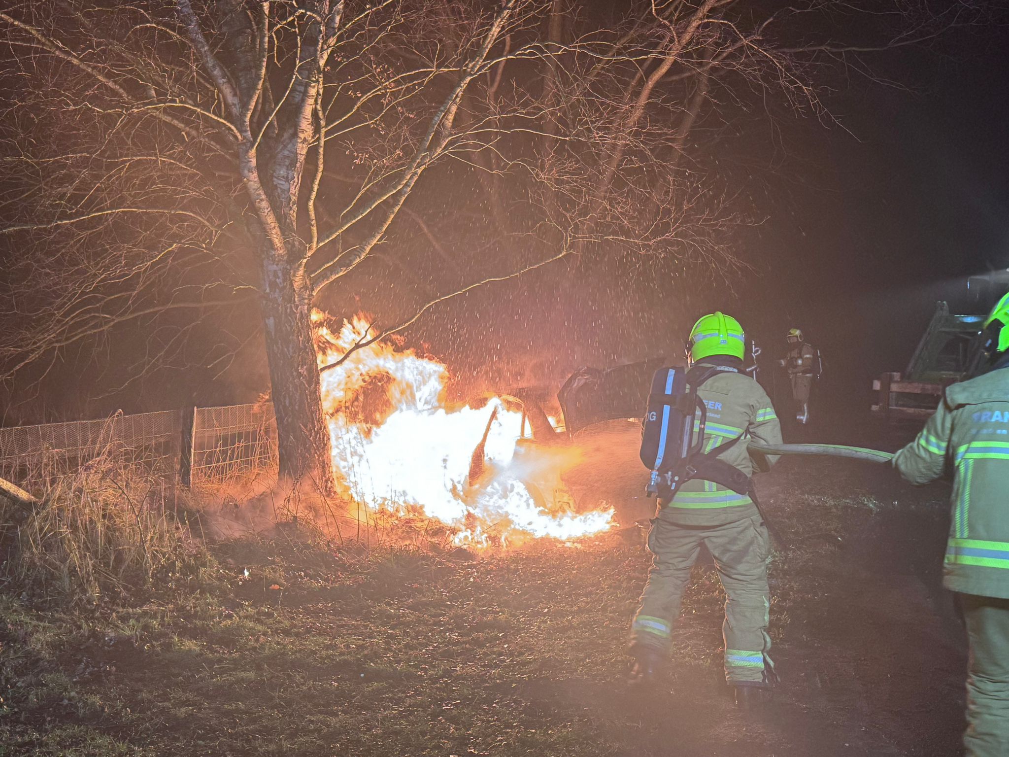 Een aantal uur later, rond de klok van 22.45 uur kwam de tweede melding van een voertuigbrand binnen. Dit keer iets verderop aan de Veenweg. Ook hier is het voertuig volledig uitgebrand.