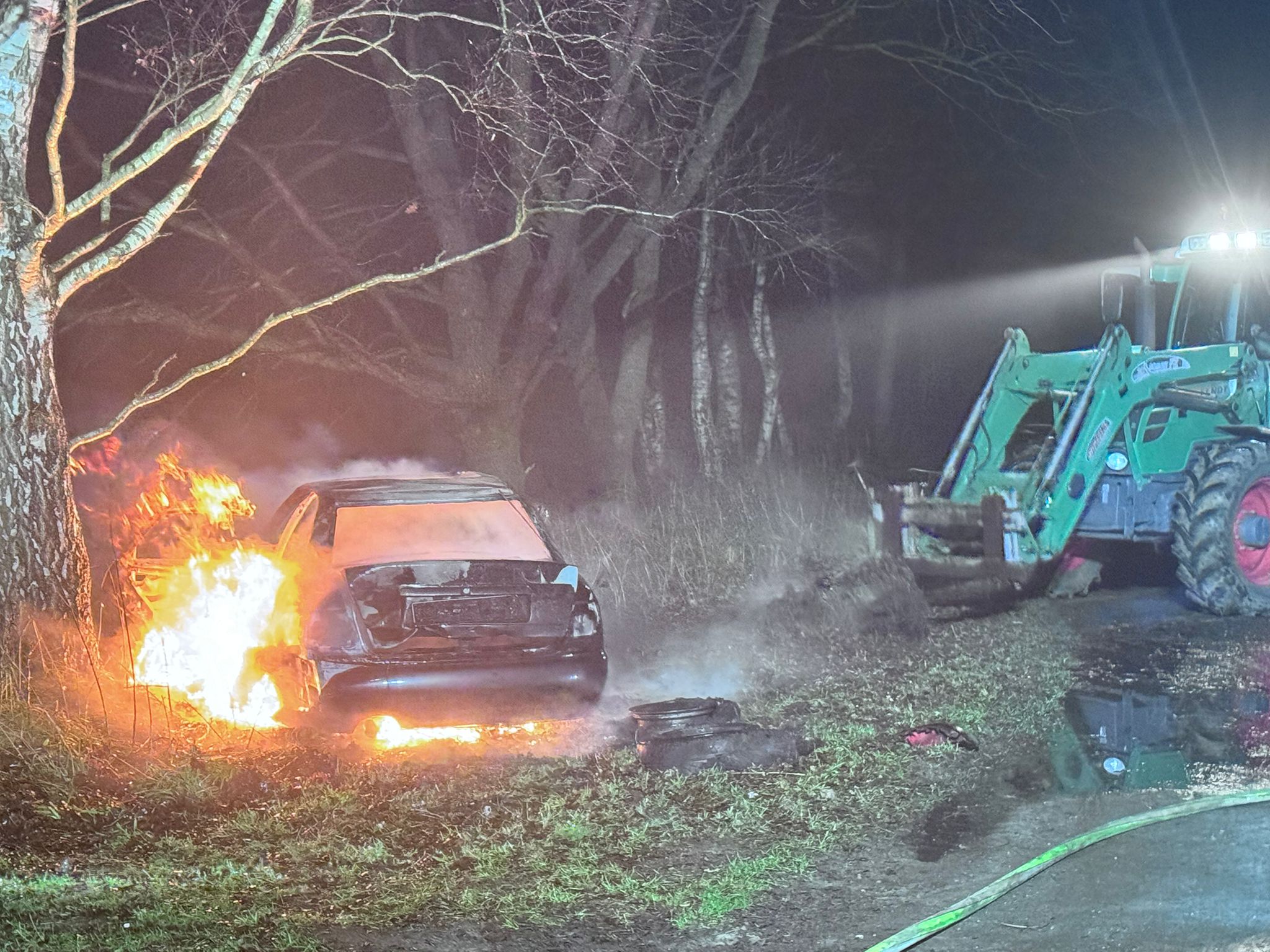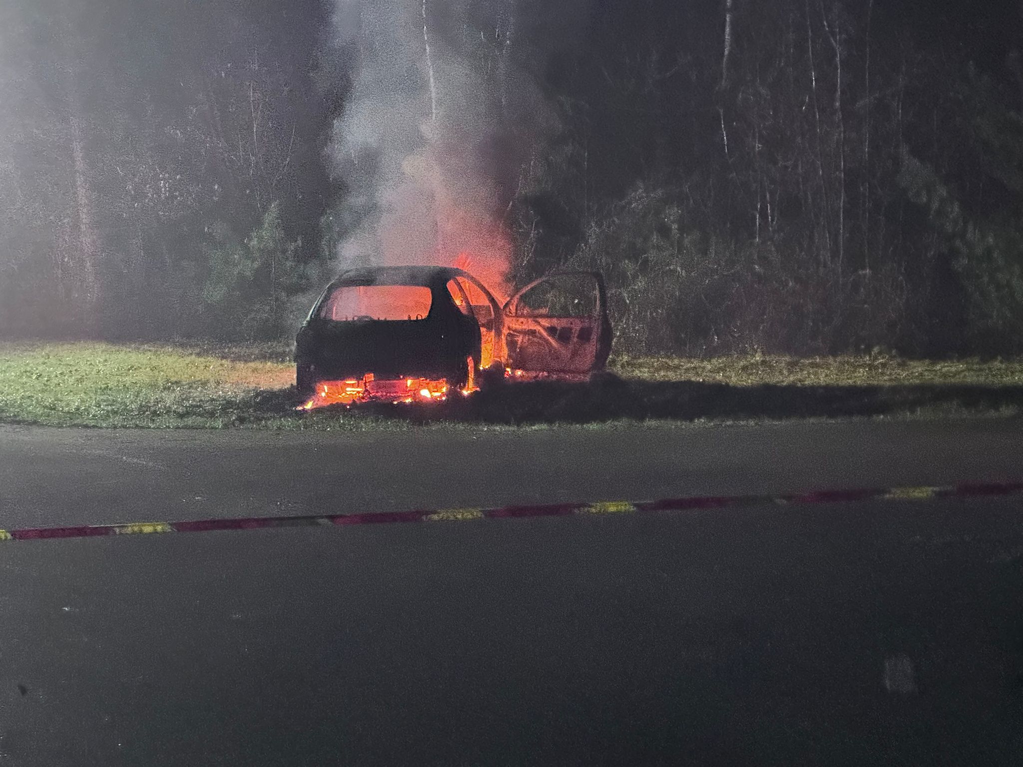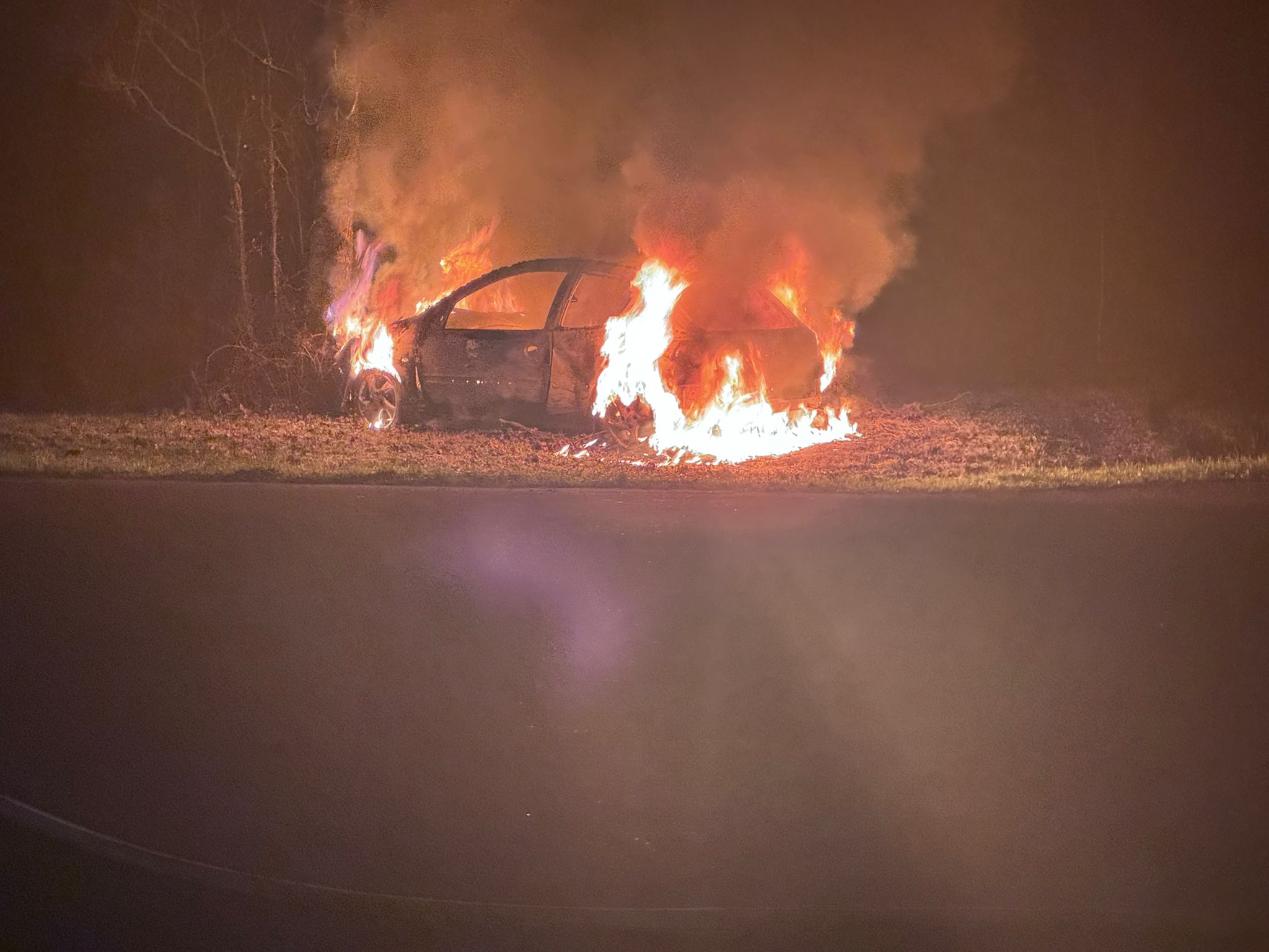 Een aantal uur later, rond de klok van 22.45 uur kwam de tweede melding van een voertuigbrand binnen. Dit keer iets verderop aan de Veenweg. Ook hier is het voertuig volledig uitgebrand.