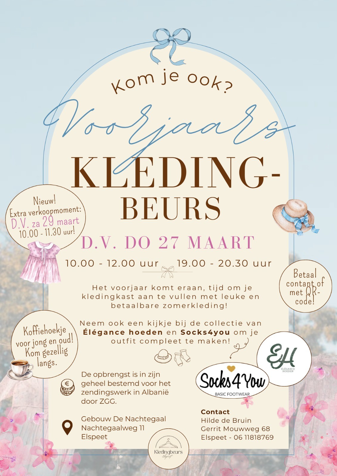 ELSPEET – Van harte welkom op 27 maart op de Voorjaarskledingbeurs. Lees alle informatie op onderstaande flyer.