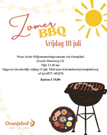 ELSPEET – Komt u/ kom jij ook gezellig BBQ’en bij Oranjehof?